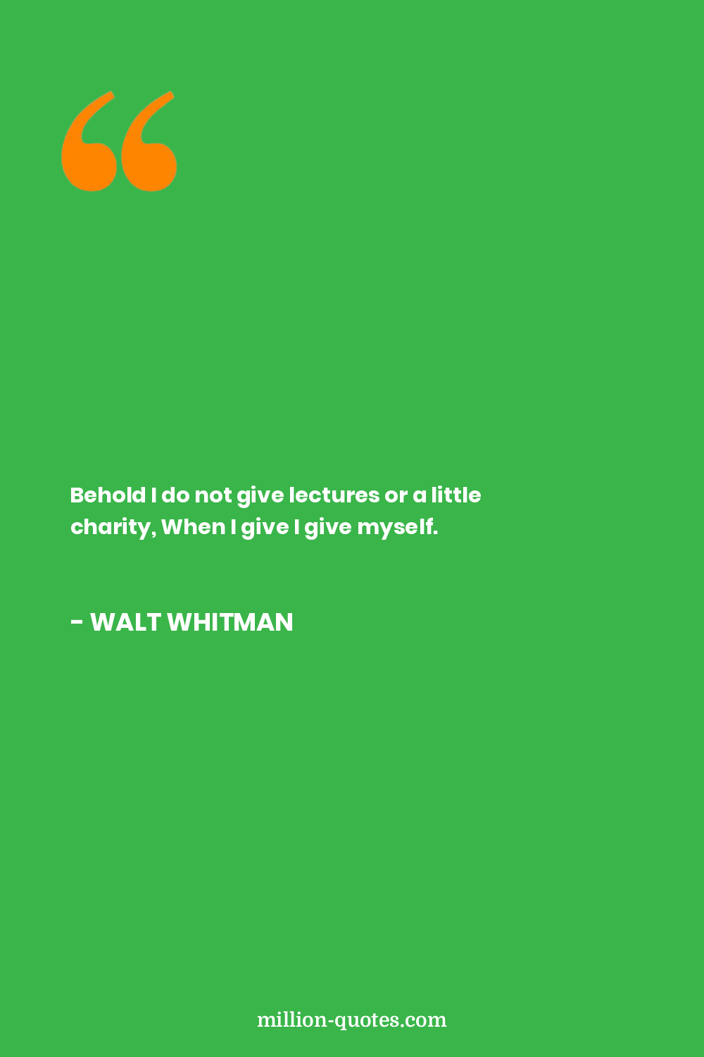 Behold I do not give lectures or a little charity, When I give I give myself.