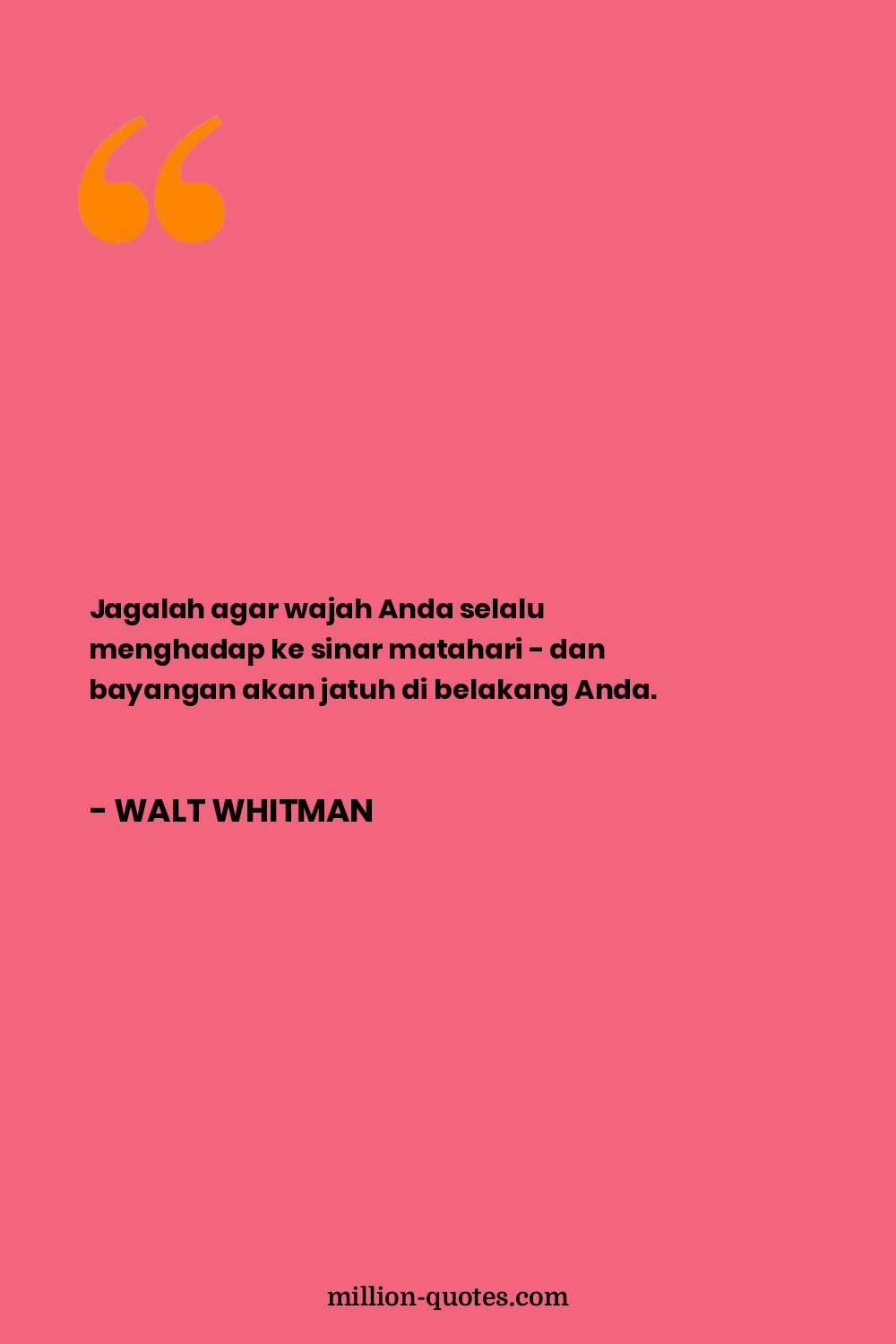 Jagalah agar wajah Anda selalu menghadap ke sinar matahari - dan bayangan akan jatuh di belakang Anda.