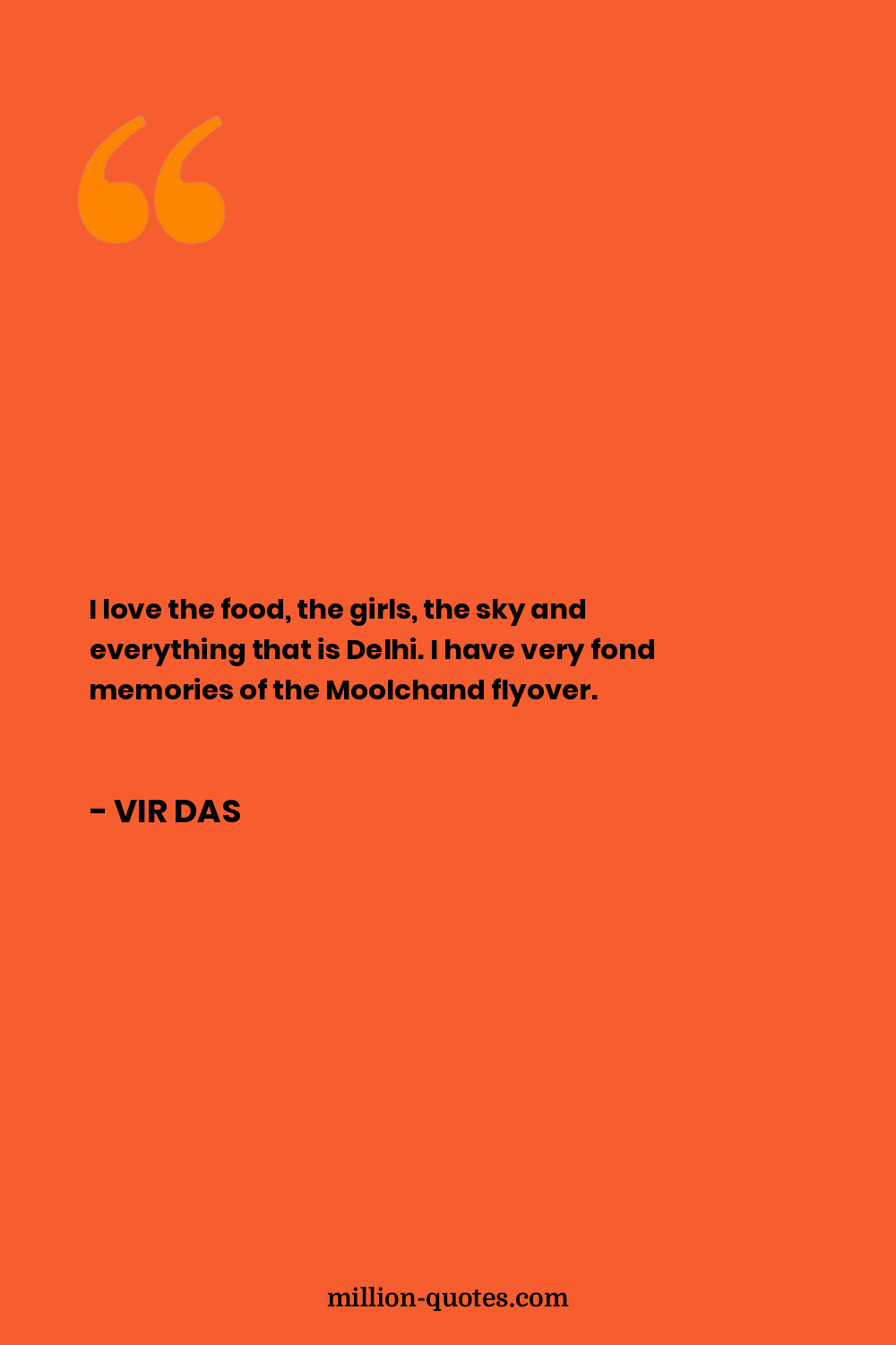 I love the food, the girls, the sky and everything that is Delhi. I have very fond memories of the Moolchand flyover.