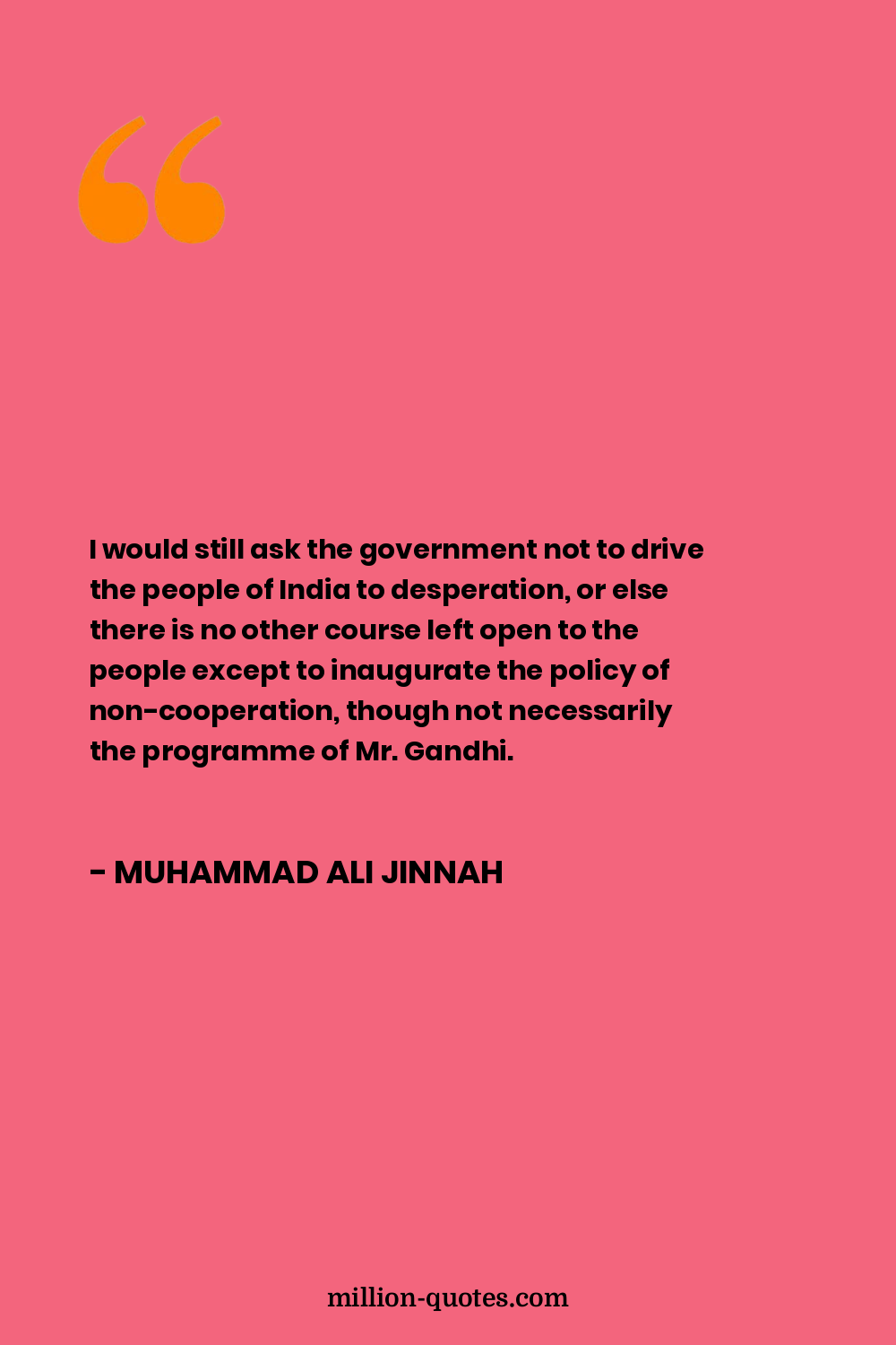 I would still ask the government not to drive the people of India to desperation, or else there is no other course left open to the people except to inaugurate the policy of non-cooperation, though not necessarily the programme of Mr. Gandhi.
