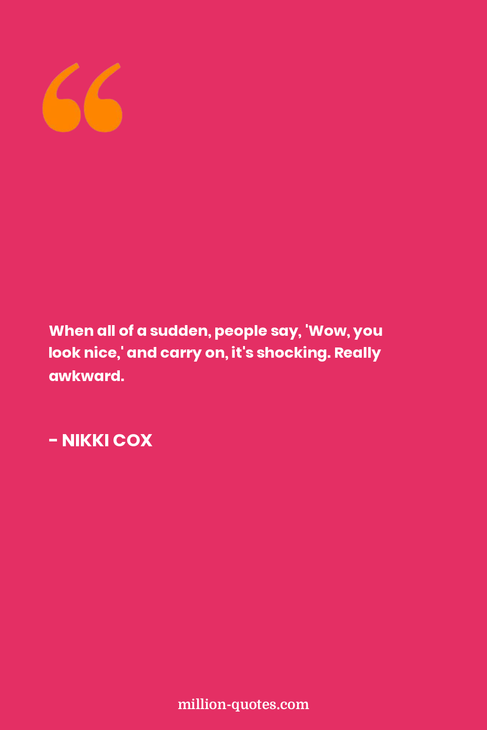 When all of a sudden, people say, 'Wow, you look nice,' and carry on, it's shocking. Really awkward.