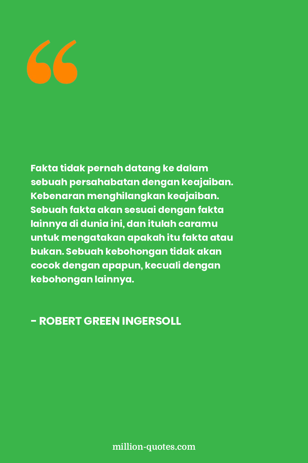 Fakta tidak pernah datang ke dalam sebuah persahabatan dengan keajaiban. Kebenaran menghilangkan keajaiban. Sebuah fakta akan sesuai dengan fakta lainnya di dunia ini, dan itulah caramu untuk mengatakan apakah itu fakta atau bukan. Sebuah kebohongan tidak akan cocok dengan apapun, kecuali dengan kebohongan lainnya.