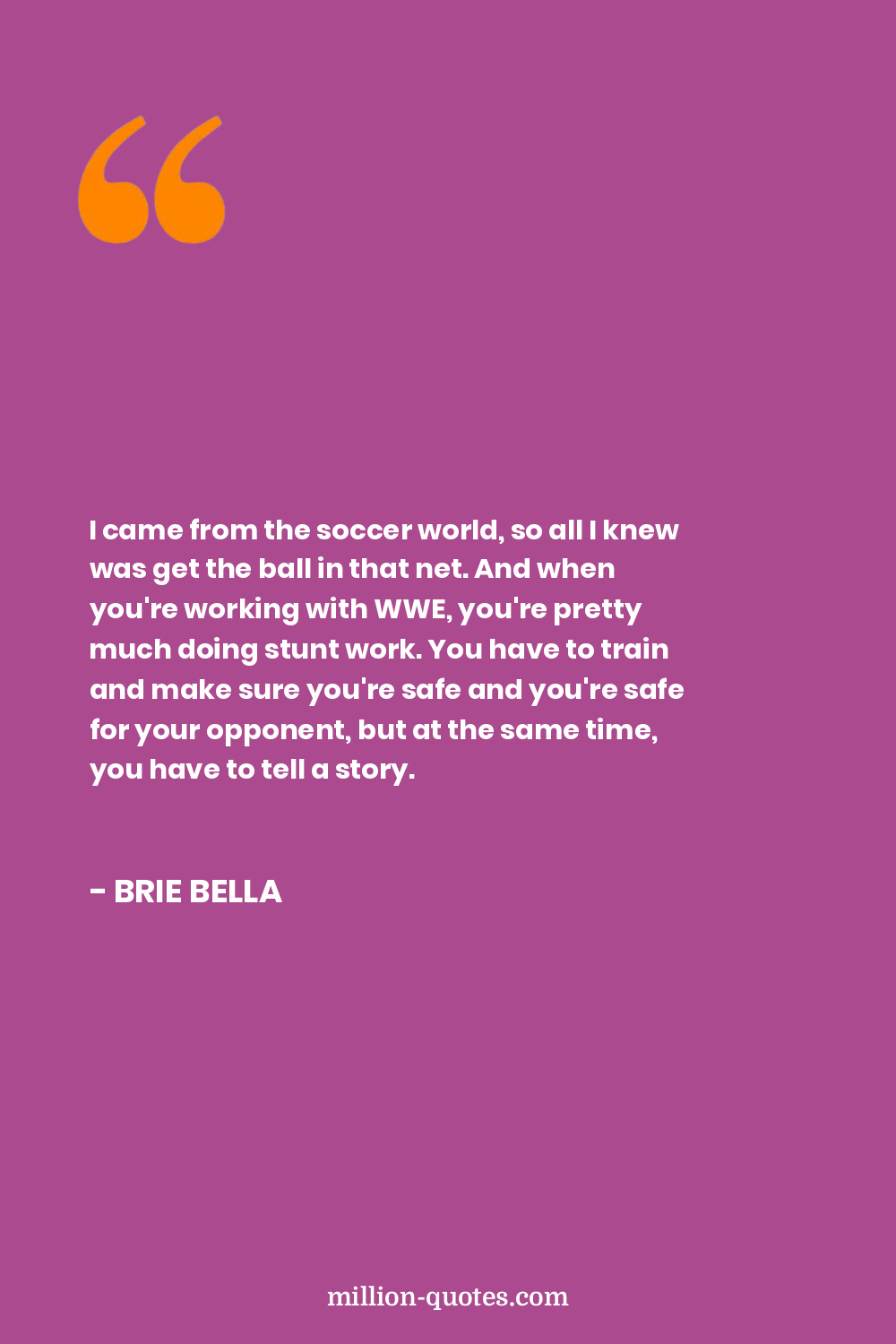 I came from the soccer world, so all I knew was get the ball in that net. And when you're working with WWE, you're pretty much doing stunt work. You have to train and make sure you're safe and you're safe for your opponent, but at the same time, you have to tell a story.
