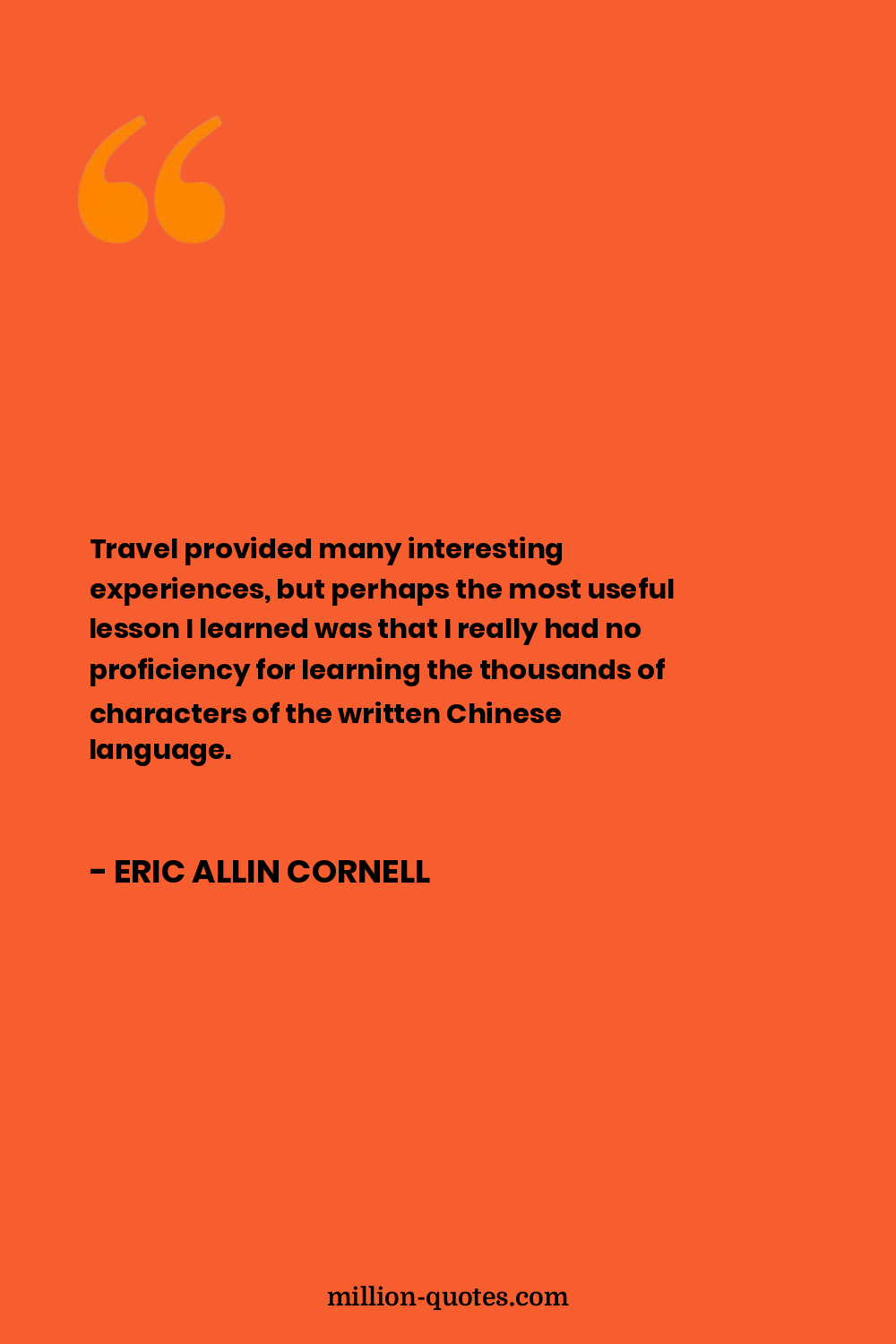 Six months after that, I left Taiwan, first for Hong Kong and then for mainland China, where I spent another three months studying still more Chinese and generally kicking around the country.