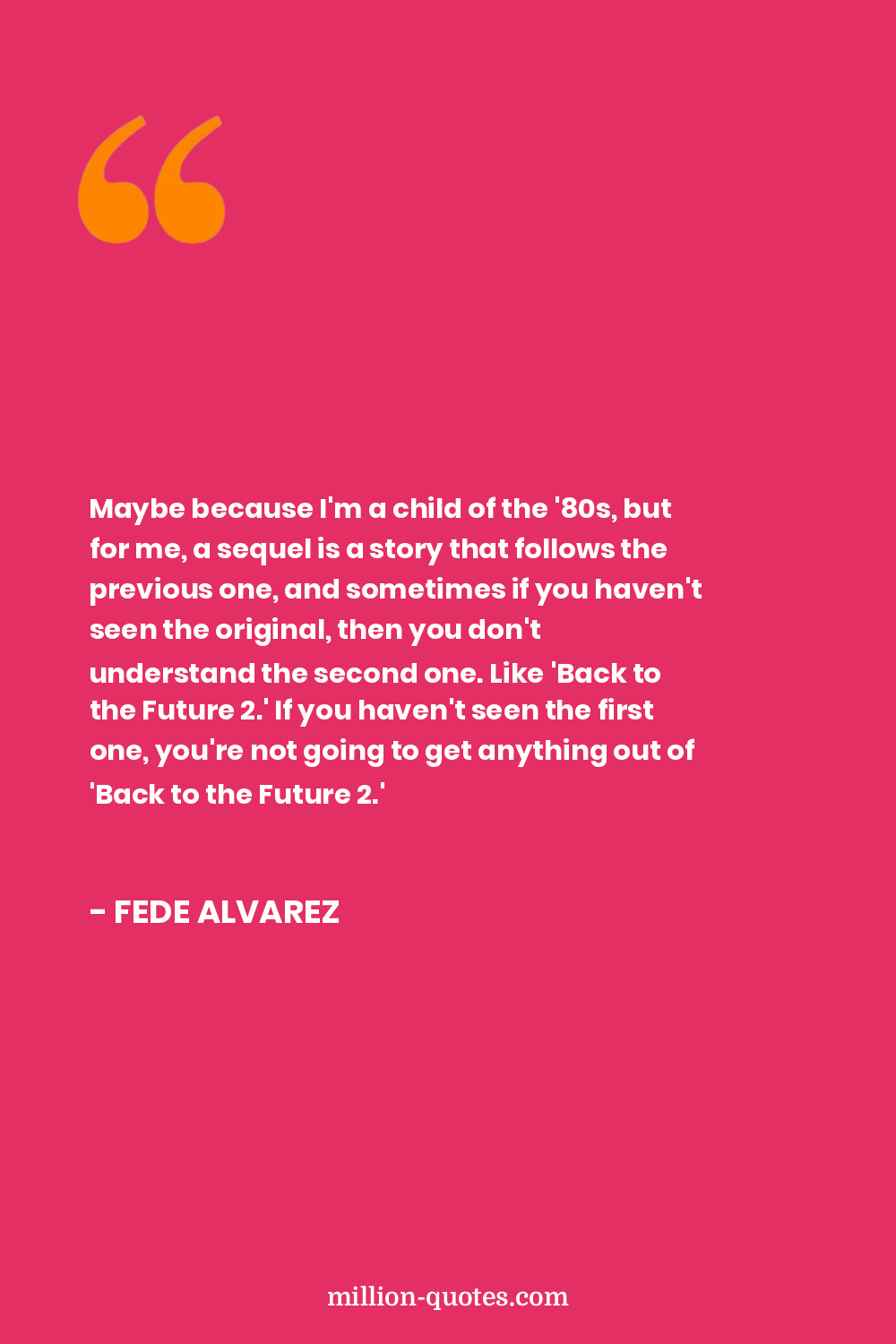 Maybe because I'm a child of the '80s, but for me, a sequel is a story that follows the previous one, and sometimes if you haven't seen the original, then you don't understand the second one. Like 'Back to the Future 2.' If you haven't seen the first one, you're not going to get anything out of 'Back to the Future 2.'
