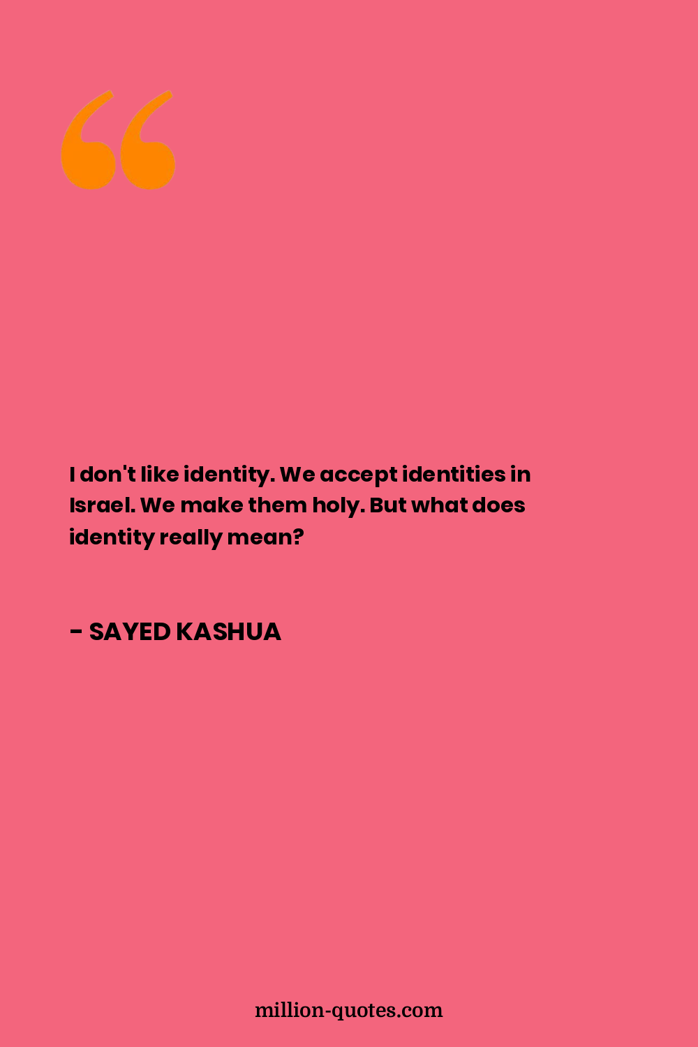 I don't like identity. We accept identities in Israel. We make them holy. But what does identity really mean?