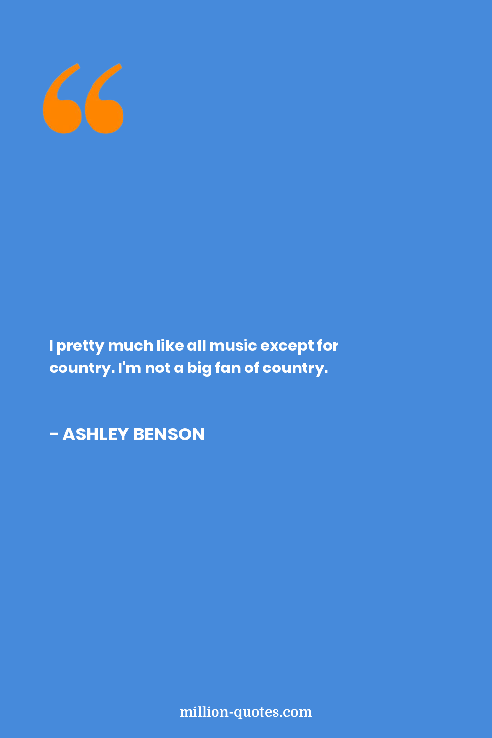 I pretty much like all music except for country. I'm not a big fan of country.