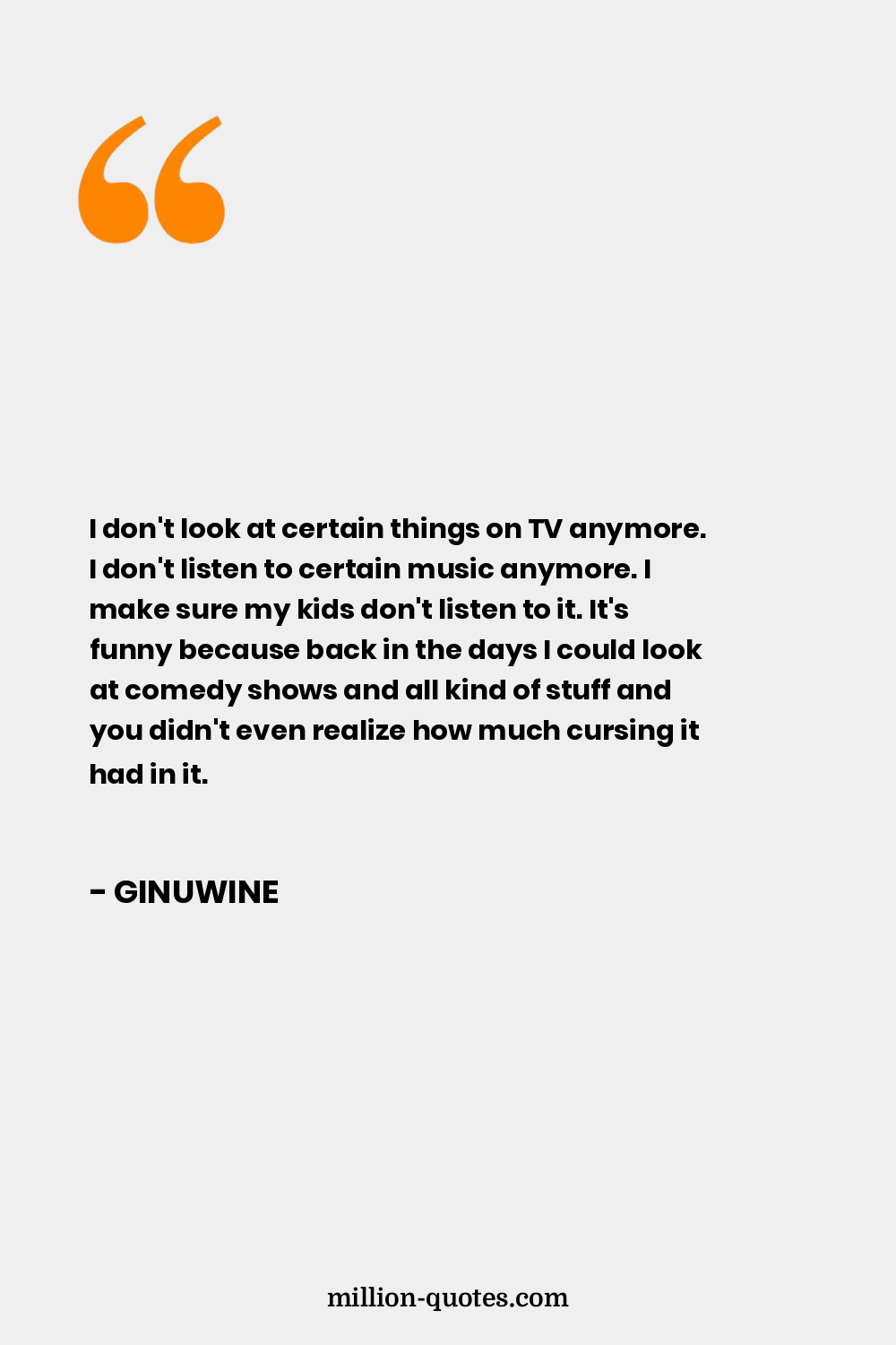 I don't look at certain things on TV anymore. I don't listen to certain music anymore. I make sure my kids don't listen to it. It's funny because back in the days I could look at comedy shows and all kind of stuff and you didn't even realize how much cursing it had in it.