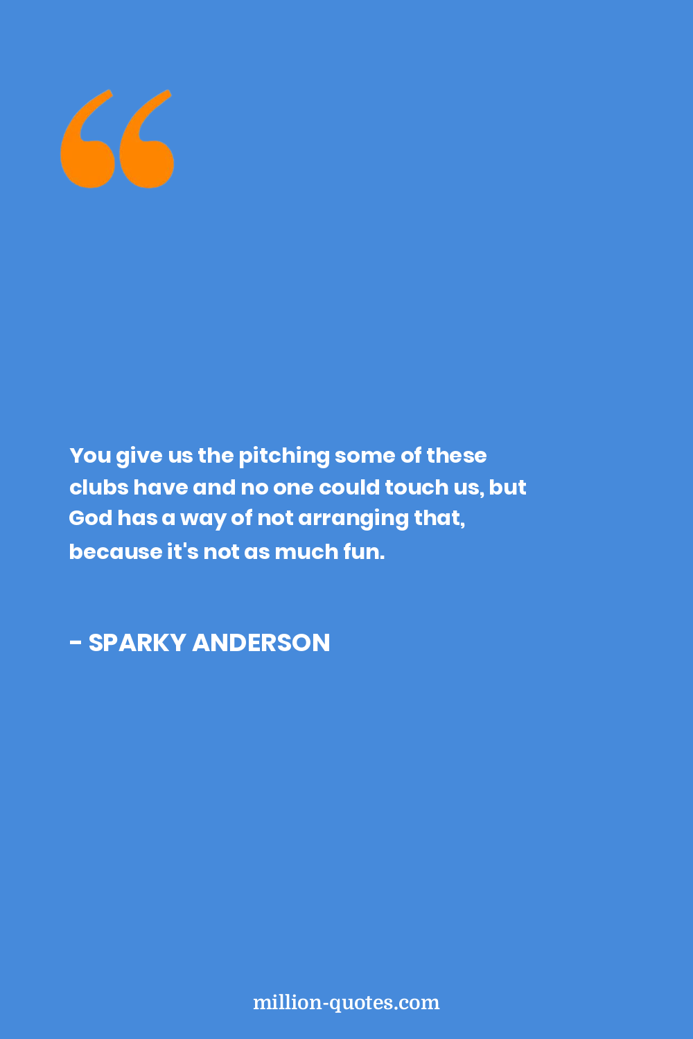 You give us the pitching some of these clubs have and no one could touch us, but God has a way of not arranging that, because it's not as much fun.