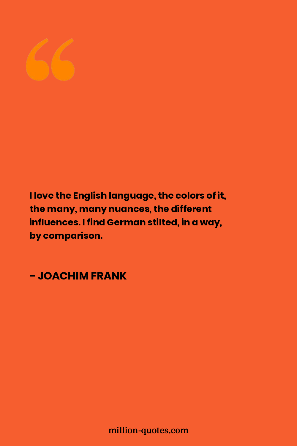 I love the English language, the colors of it, the many, many nuances, the different influences. I find German stilted, in a way, by comparison.