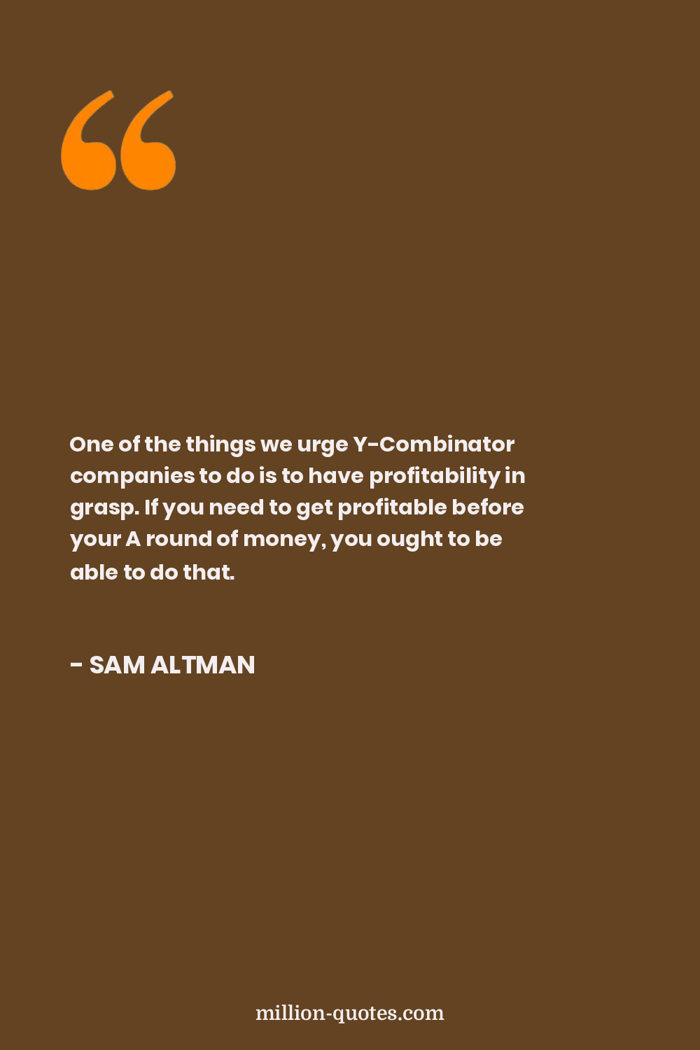 One of the things we urge Y-Combinator companies to do is to have profitability in grasp. If you need to get profitable before your A round of money, you ought to be able to do that.