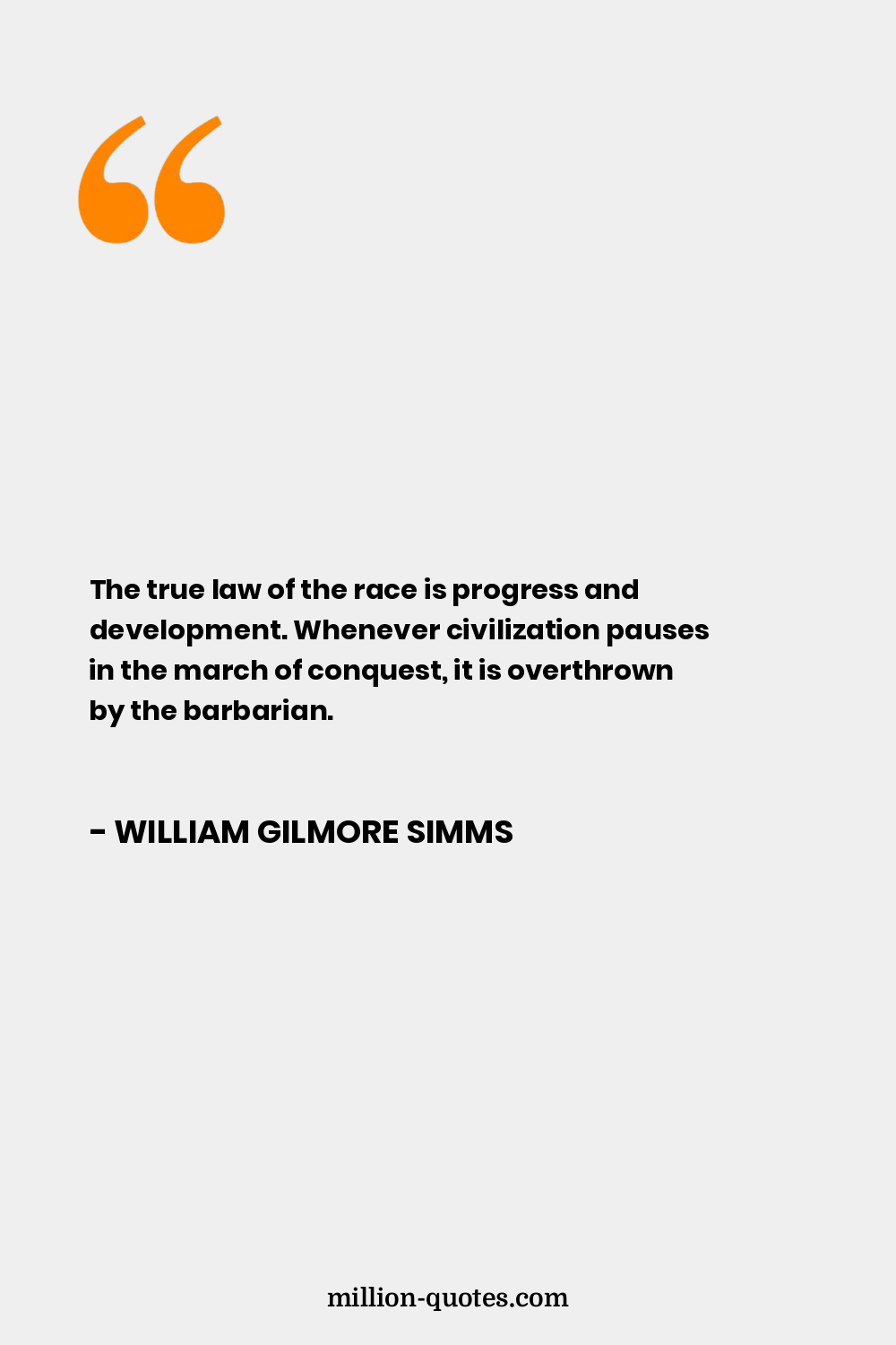 The true law of the race is progress and development. Whenever civilization pauses in the march of conquest, it is overthrown by the barbarian.