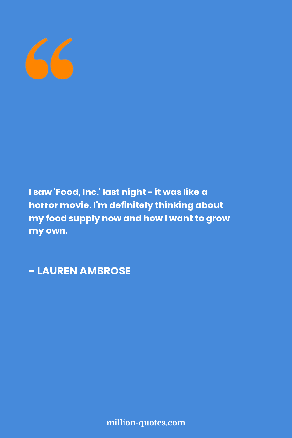I saw 'Food, Inc.' last night - it was like a horror movie. I'm definitely thinking about my food supply now and how I want to grow my own.