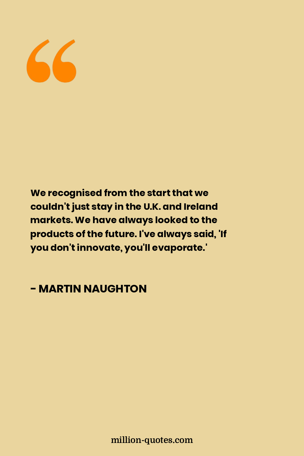 We recognised from the start that we couldn't just stay in the U.K. and Ireland markets. We have always looked to the products of the future. I've always said, 'If you don't innovate, you'll evaporate.'