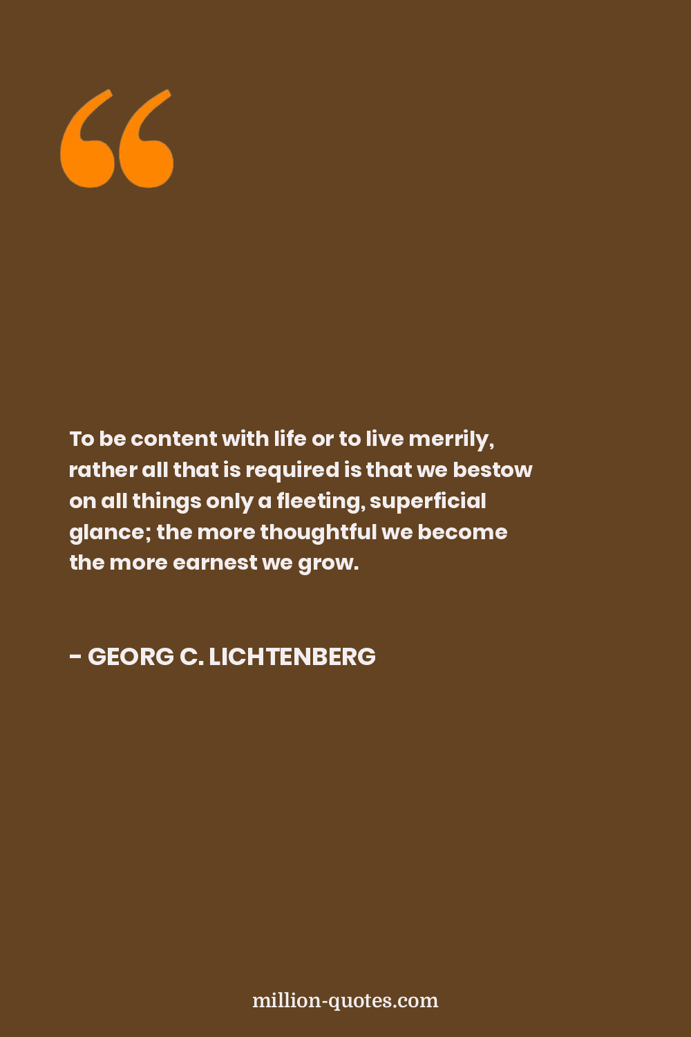 To be content with life or to live merrily, rather all that is required is that we bestow on all things only a fleeting, superficial glance; the more thoughtful we become the more earnest we grow.