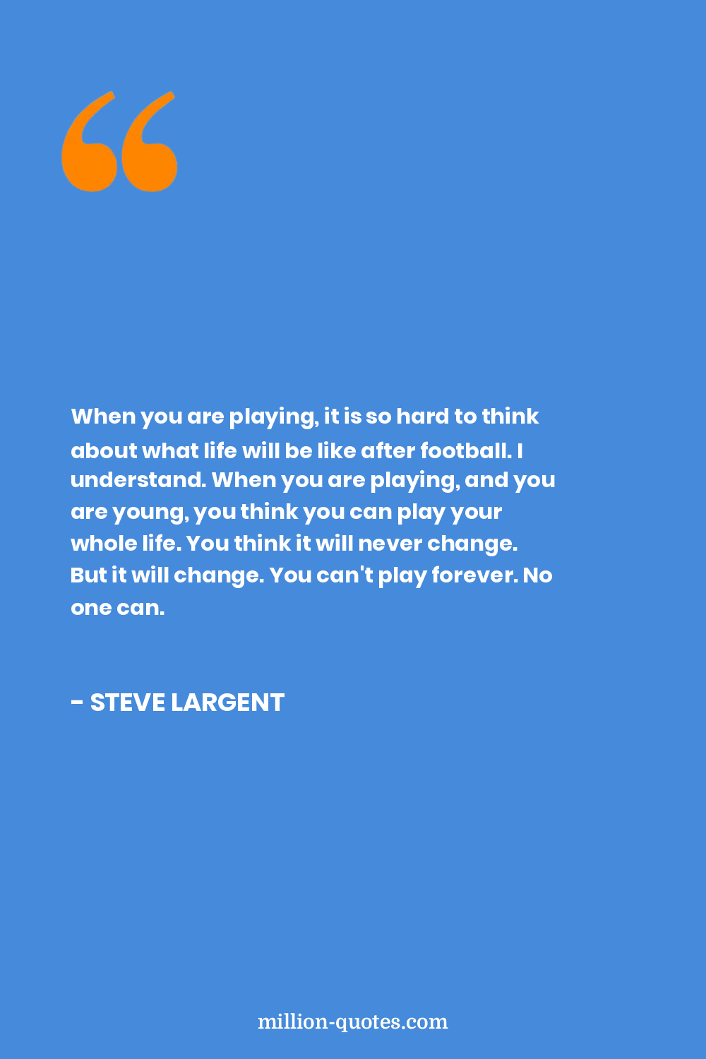 When you are playing, it is so hard to think about what life will be like after football. I understand. When you are playing, and you are young, you think you can play your whole life. You think it will never change. But it will change. You can't play forever. No one can.