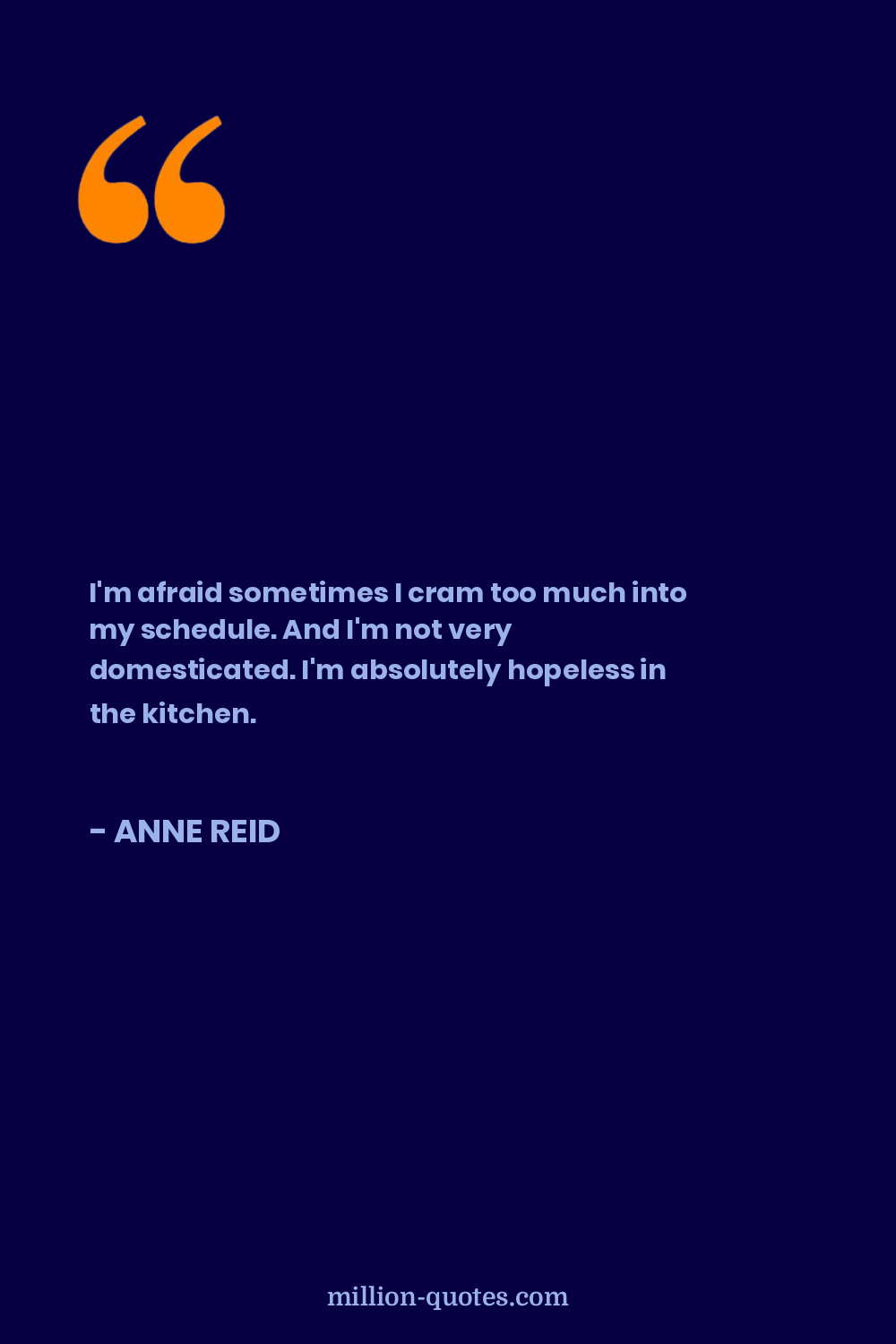 I'm afraid sometimes I cram too much into my schedule. And I'm not very domesticated. I'm absolutely hopeless in the kitchen.