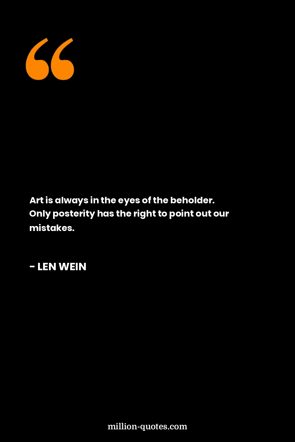 Art is always in the eyes of the beholder. Only posterity has the right to point out our mistakes.