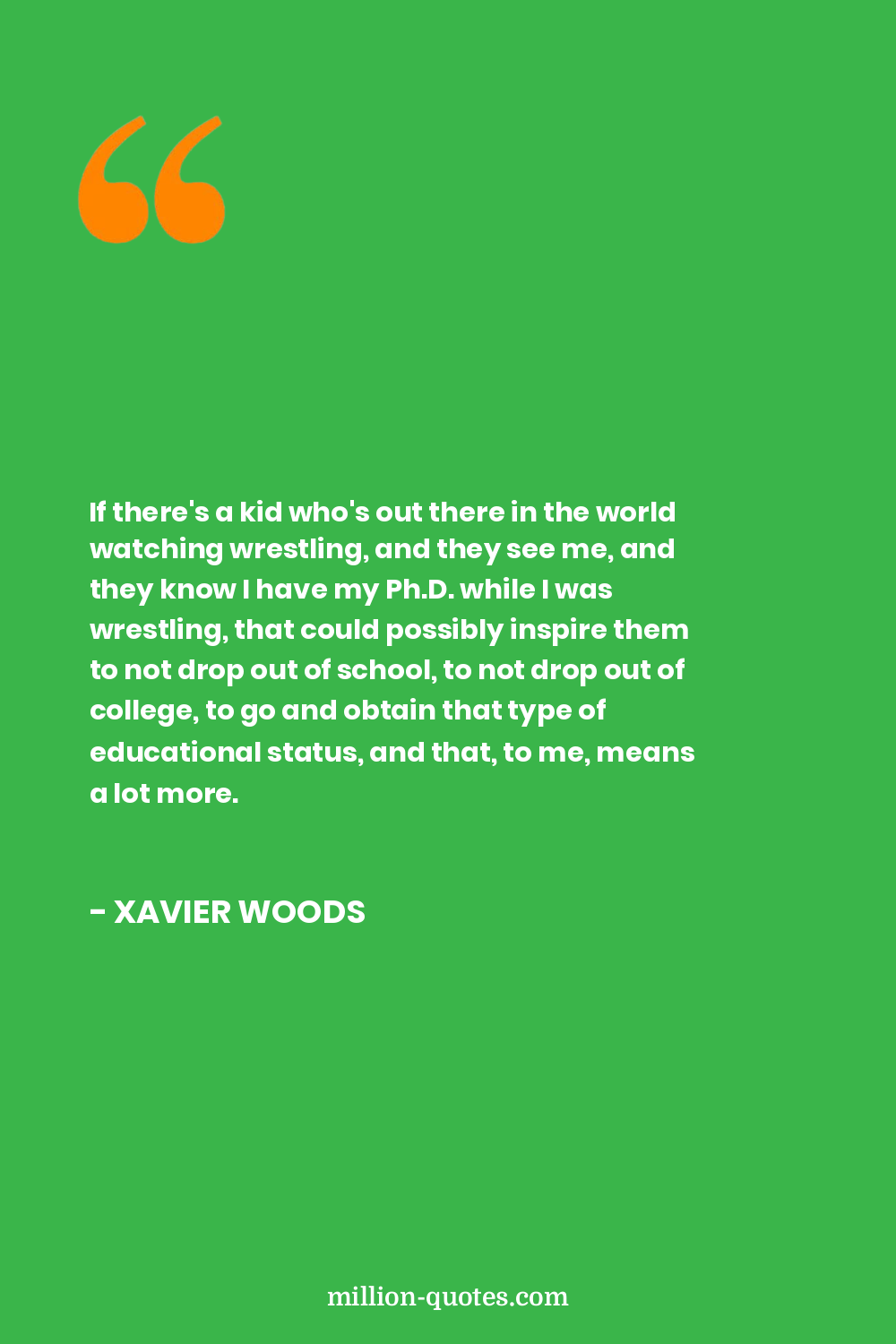 If there's a kid who's out there in the world watching wrestling, and they see me, and they know I have my Ph.D. while I was wrestling, that could possibly inspire them to not drop out of school, to not drop out of college, to go and obtain that type of educational status, and that, to me, means a lot more.