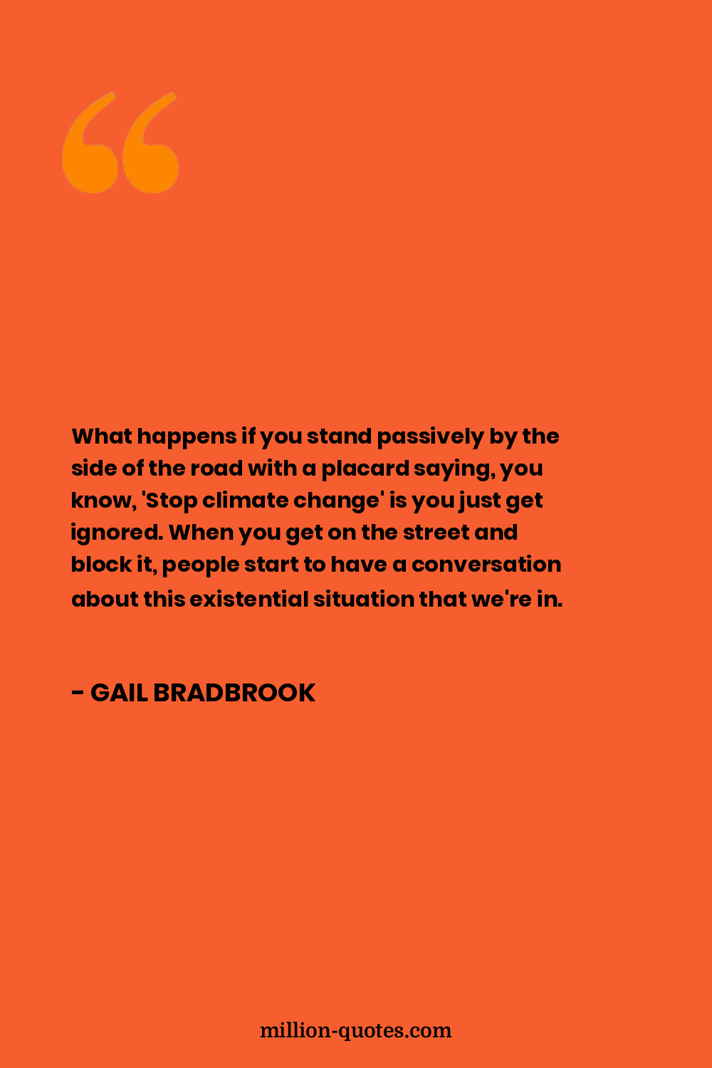 What happens if you stand passively by the side of the road with a placard saying, you know, 'Stop climate change' is you just get ignored. When you get on the street and block it, people start to have a conversation about this existential situation that we're in.