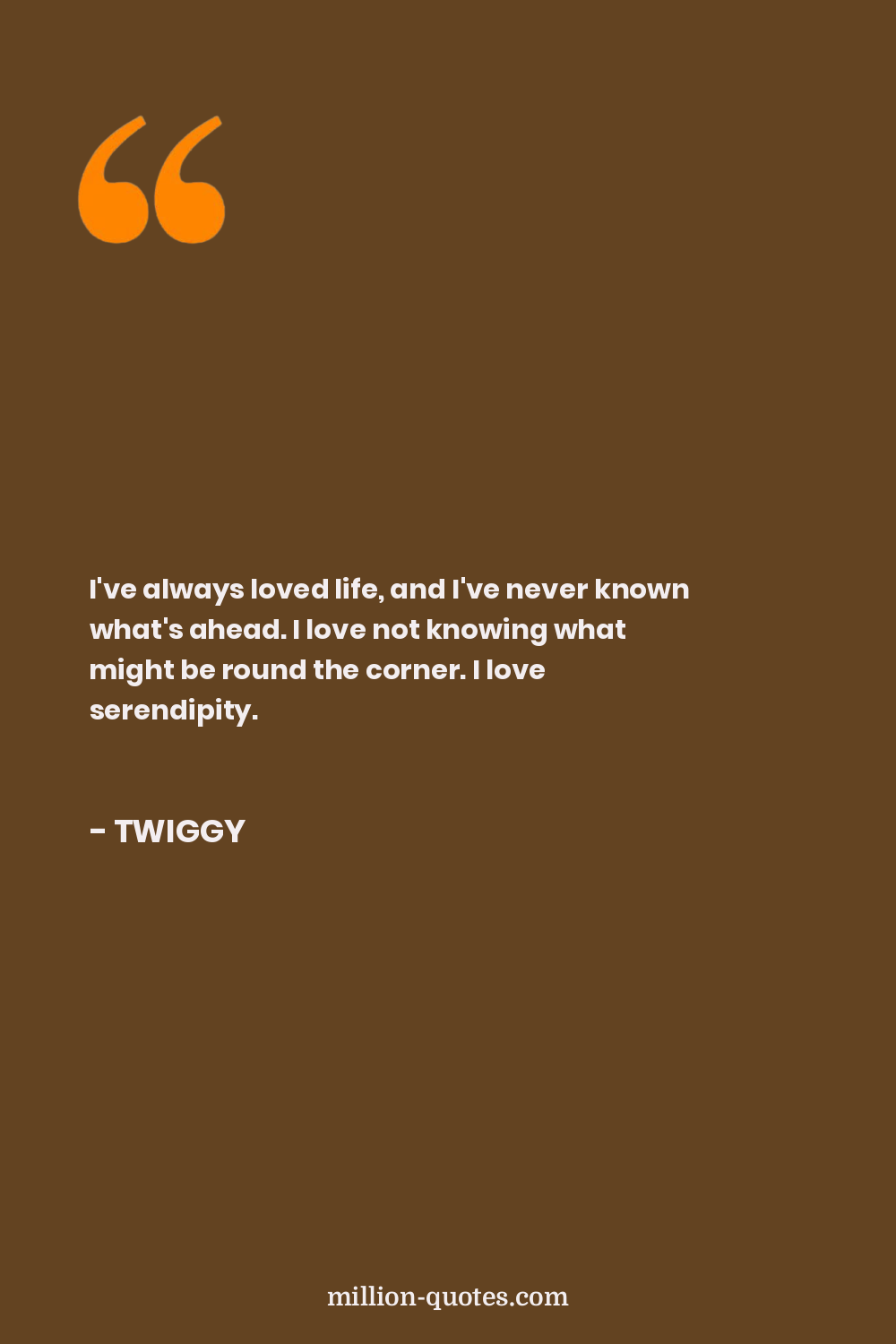 I've always loved life, and I've never known what's ahead. I love not knowing what might be round the corner. I love serendipity.