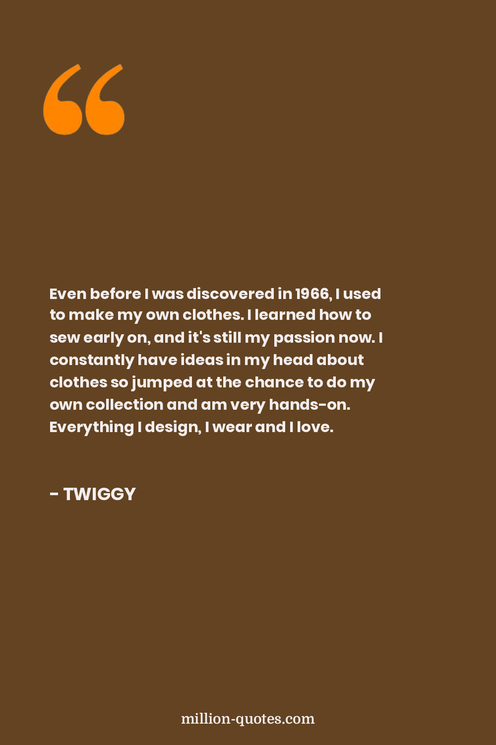 Even before I was discovered in 1966, I used to make my own clothes. I learned how to sew early on, and it's still my passion now. I constantly have ideas in my head about clothes so jumped at the chance to do my own collection and am very hands-on. Everything I design, I wear and I love.