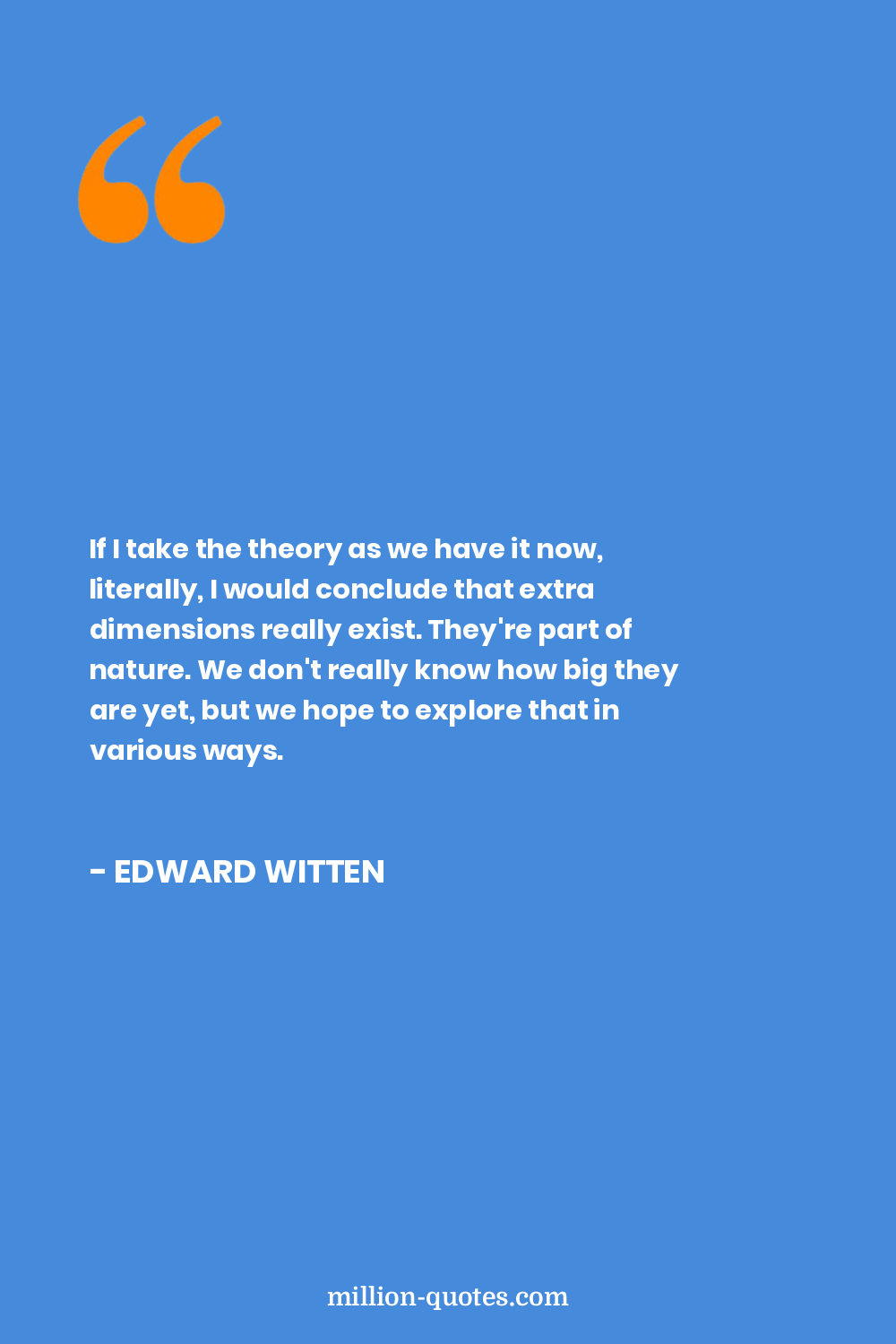 If I take the theory as we have it now, literally, I would conclude that extra dimensions really exist. They're part of nature. We don't really know how big they are yet, but we hope to explore that in various ways.
