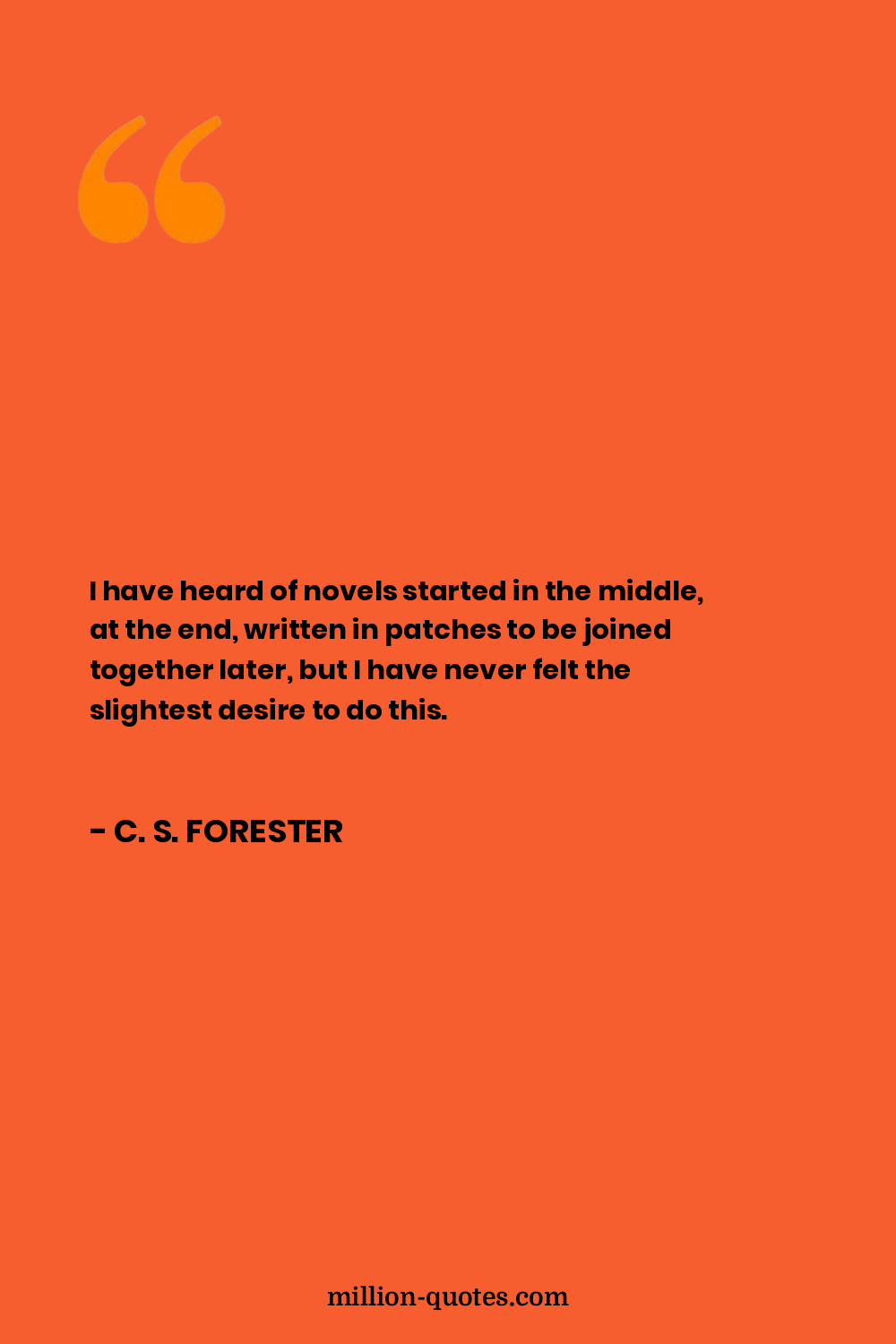 I have heard of novels started in the middle, at the end, written in patches to be joined together later, but I have never felt the slightest desire to do this.