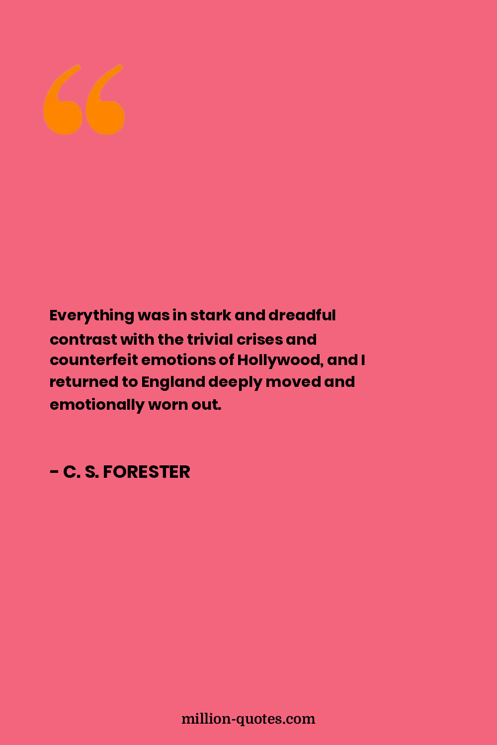 Everything was in stark and dreadful contrast with the trivial crises and counterfeit emotions of Hollywood, and I returned to England deeply moved and emotionally worn out.