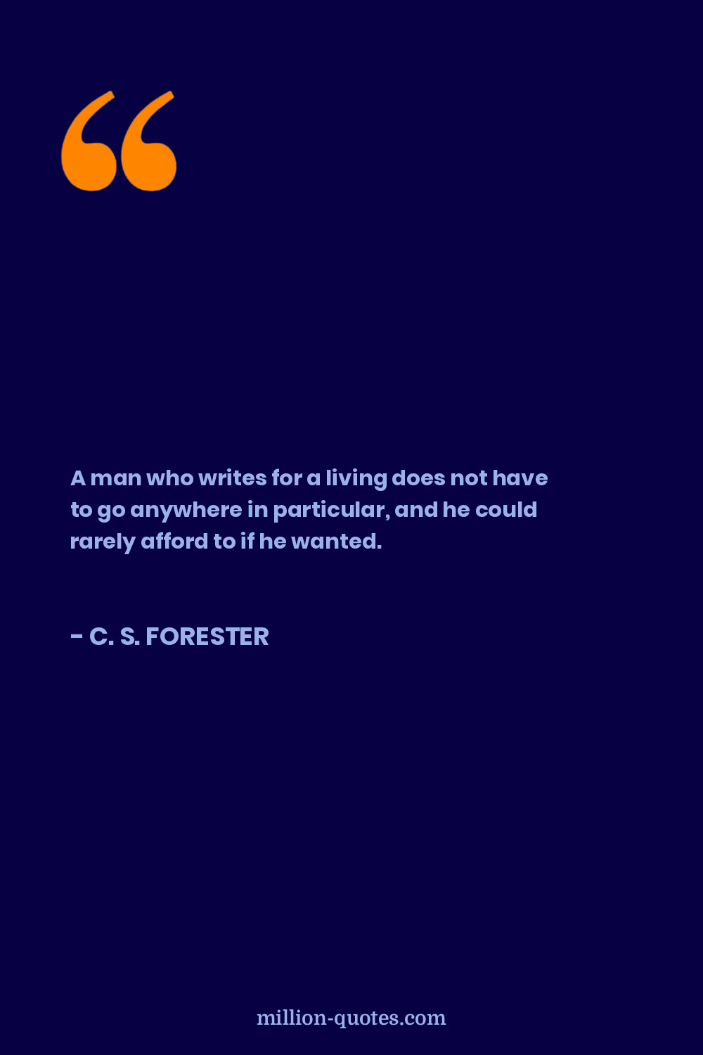A man who writes for a living does not have to go anywhere in particular, and he could rarely afford to if he wanted.