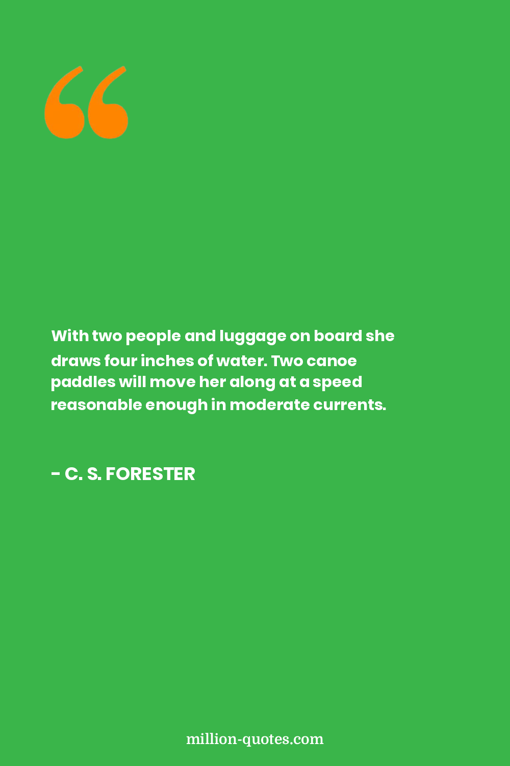 With two people and luggage on board she draws four inches of water. Two canoe paddles will move her along at a speed reasonable enough in moderate currents.