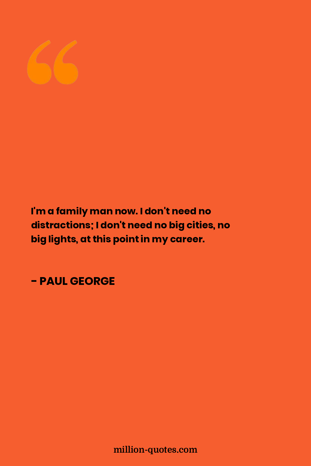 I'm a family man now. I don't need no distractions; I don't need no big cities, no big lights, at this point in my career.
