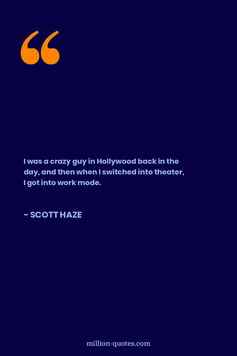 I was a crazy guy in Hollywood back in the day, and then when I switched into theater, I got into work mode.