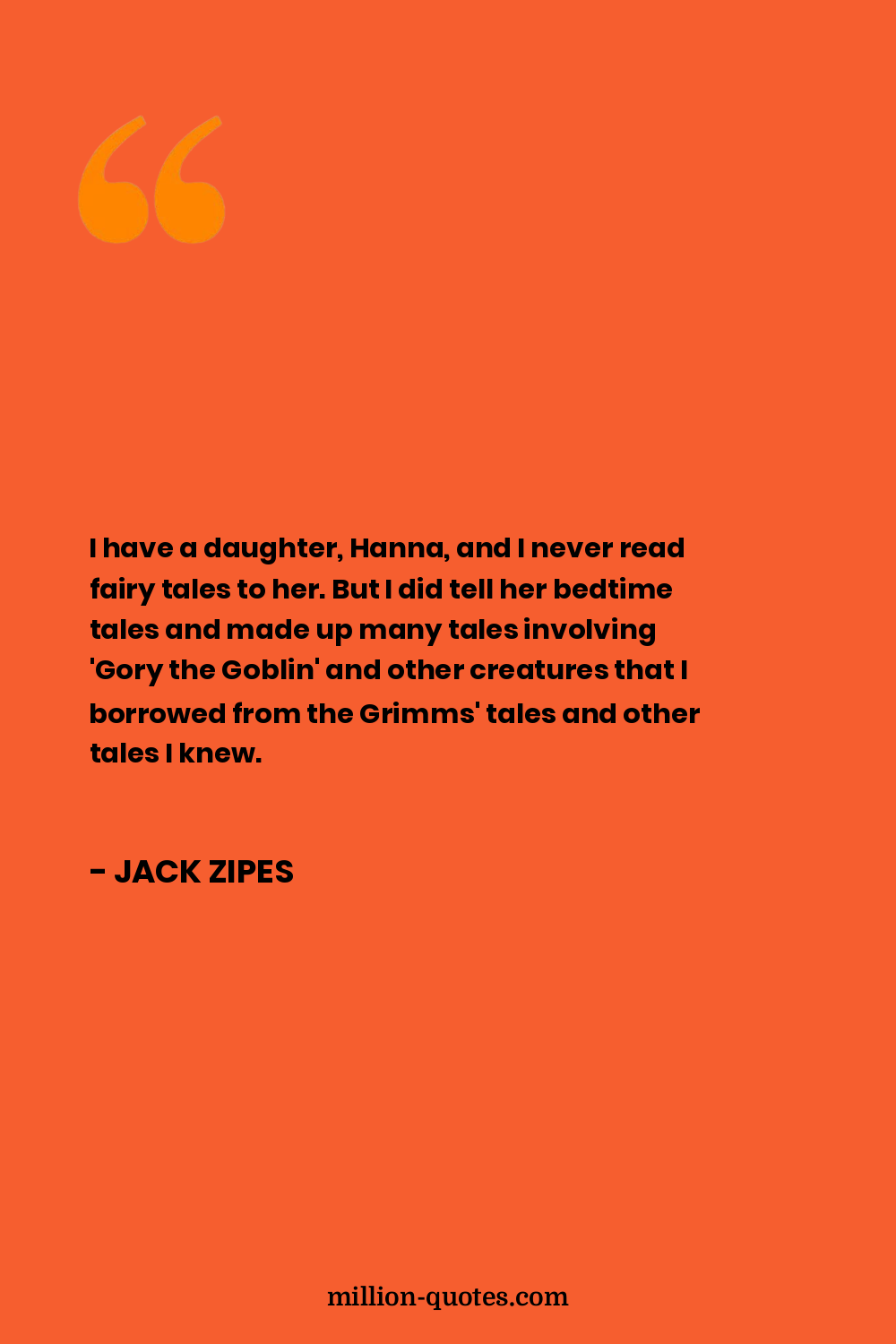 I have a daughter, Hanna, and I never read fairy tales to her. But I did tell her bedtime tales and made up many tales involving 'Gory the Goblin' and other creatures that I borrowed from the Grimms' tales and other tales I knew.