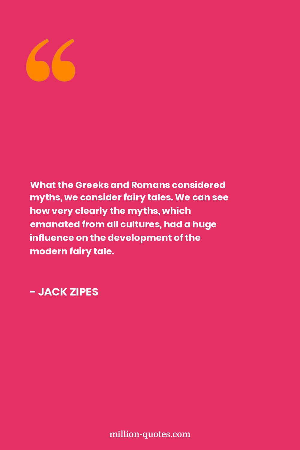 What the Greeks and Romans considered myths, we consider fairy tales. We can see how very clearly the myths, which emanated from all cultures, had a huge influence on the development of the modern fairy tale.