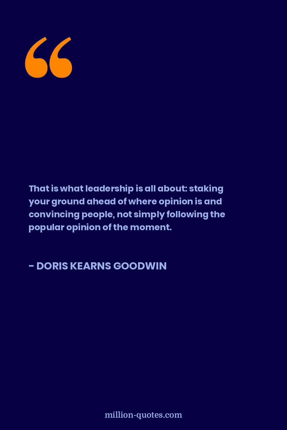 That is what leadership is all about: staking your ground ahead of where opinion is and convincing people, not simply following the popular opinion of the moment.