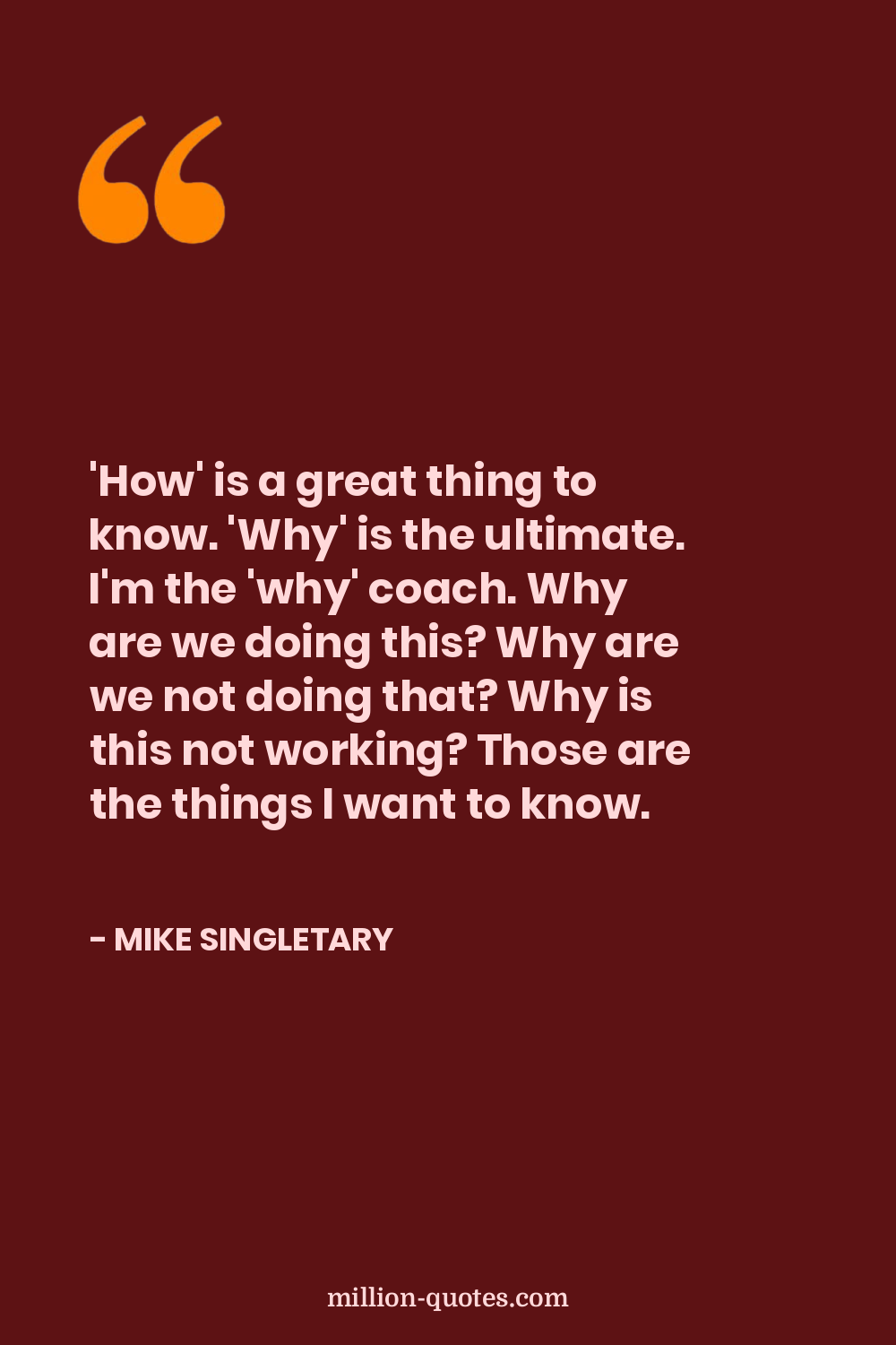 'How' is a great thing to know. 'Why' is the ultimate. I'm the 'why' coach. Why are we doing this? Why are we not doing that? Why is this not working? Those are the things I want to know.