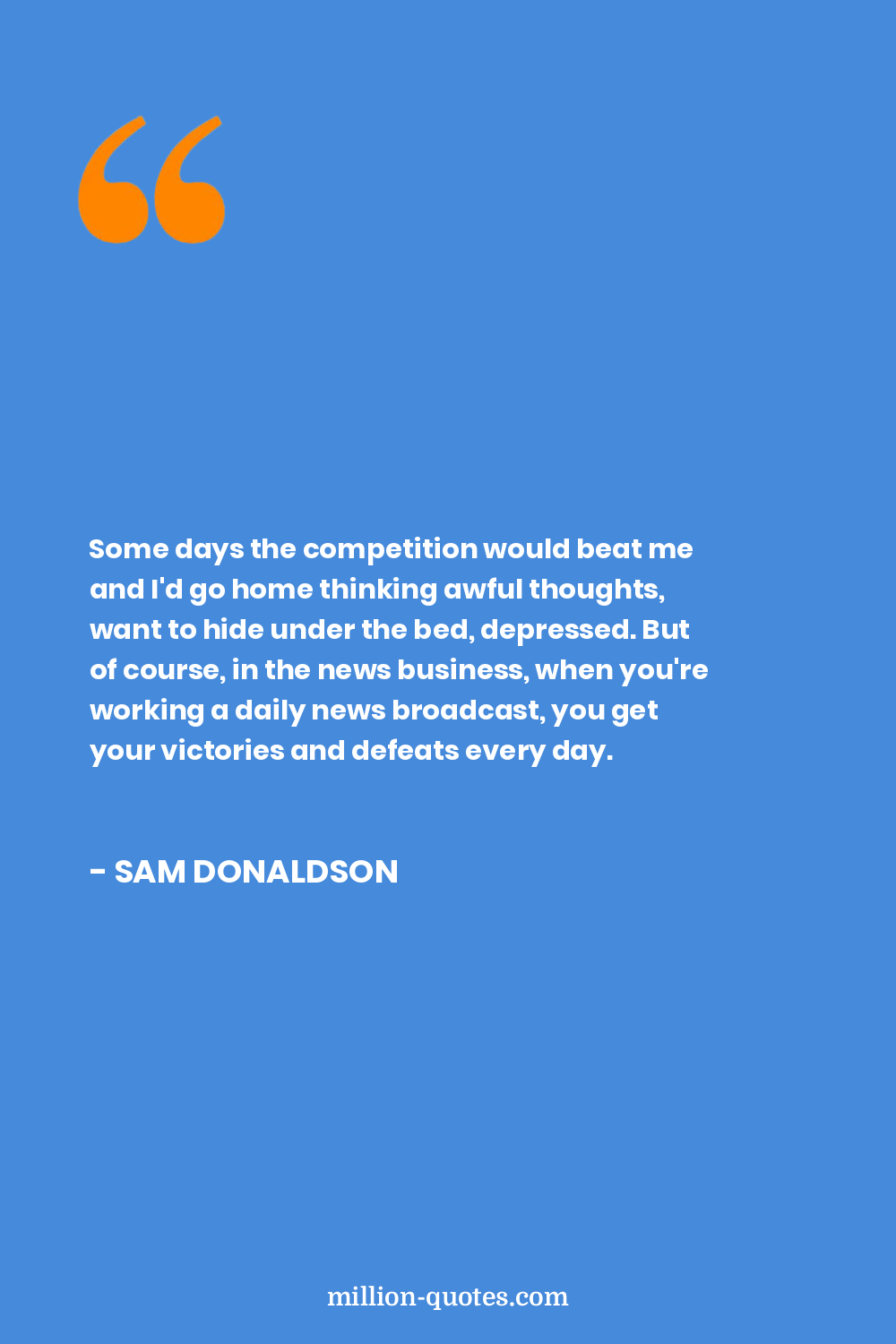 Some days the competition would beat me and I'd go home thinking awful thoughts, want to hide under the bed, depressed. But of course, in the news business, when you're working a daily news broadcast, you get your victories and defeats every day.