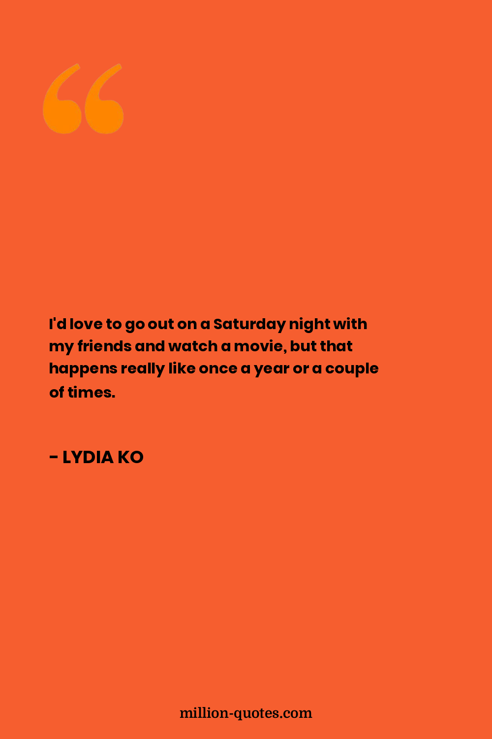 I'd love to go out on a Saturday night with my friends and watch a movie, but that happens really like once a year or a couple of times.