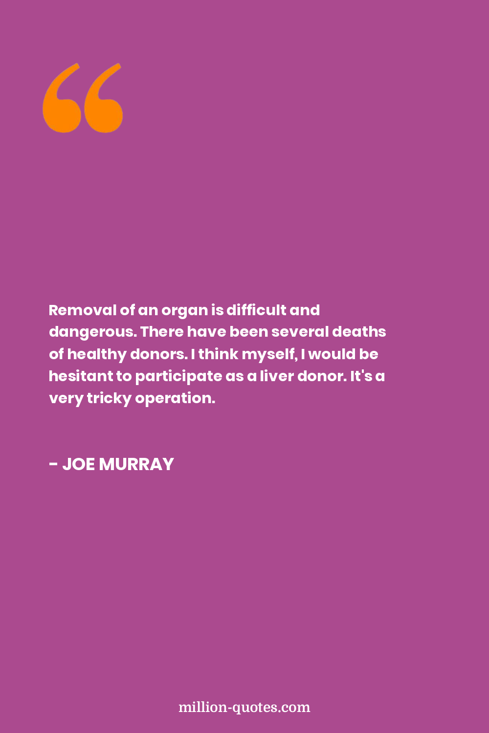 Removal of an organ is difficult and dangerous. There have been several deaths of healthy donors. I think myself, I would be hesitant to participate as a liver donor. It's a very tricky operation.