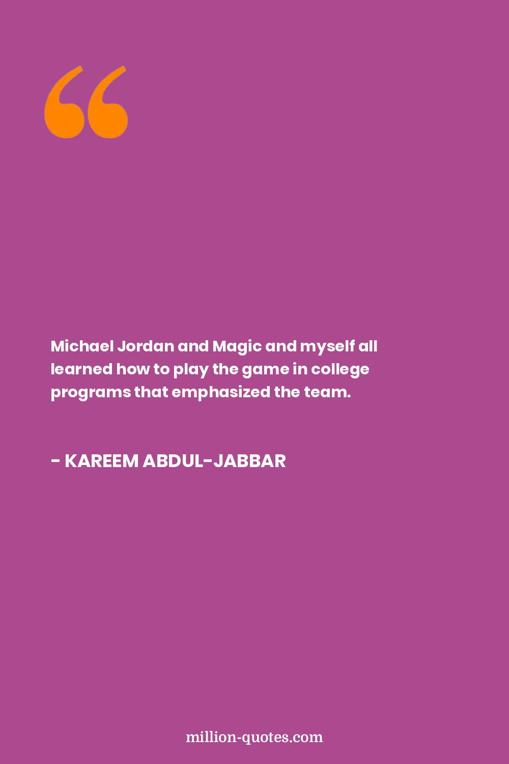 Michael Jordan and Magic and myself all learned how to play the game in college programs that emphasized the team.