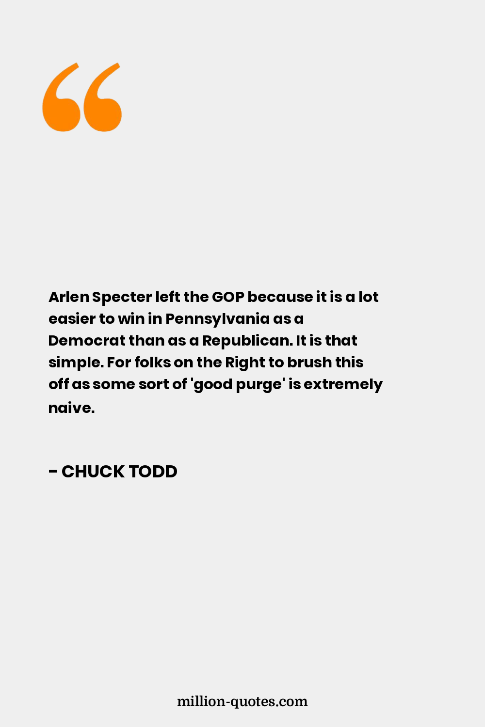 Arlen Specter left the GOP because it is a lot easier to win in Pennsylvania as a Democrat than as a Republican. It is that simple. For folks on the Right to brush this off as some sort of 'good purge' is extremely naive.