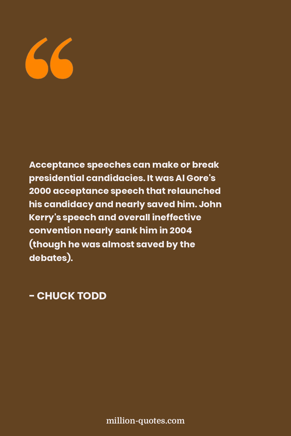 Acceptance speeches can make or break presidential candidacies. It was Al Gore's 2000 acceptance speech that relaunched his candidacy and nearly saved him. John Kerry's speech and overall ineffective convention nearly sank him in 2004 (though he was almost saved by the debates).