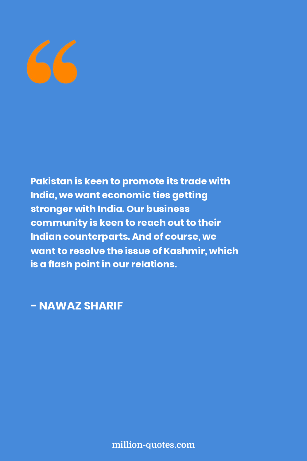 Pakistan is keen to promote its trade with India, we want economic ties getting stronger with India. Our business community is keen to reach out to their Indian counterparts. And of course, we want to resolve the issue of Kashmir, which is a flash point in our relations.