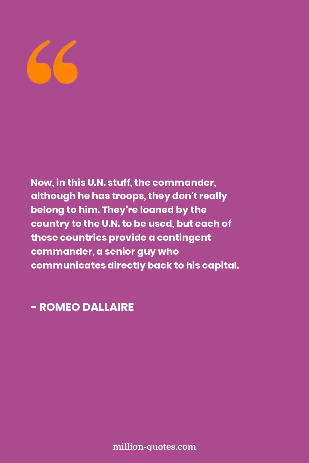 Now, in this U.N. stuff, the commander, although he has troops, they don't really belong to him. They're loaned by the country to the U.N. to be used, but each of these countries provide a contingent commander, a senior guy who communicates directly back to his capital.