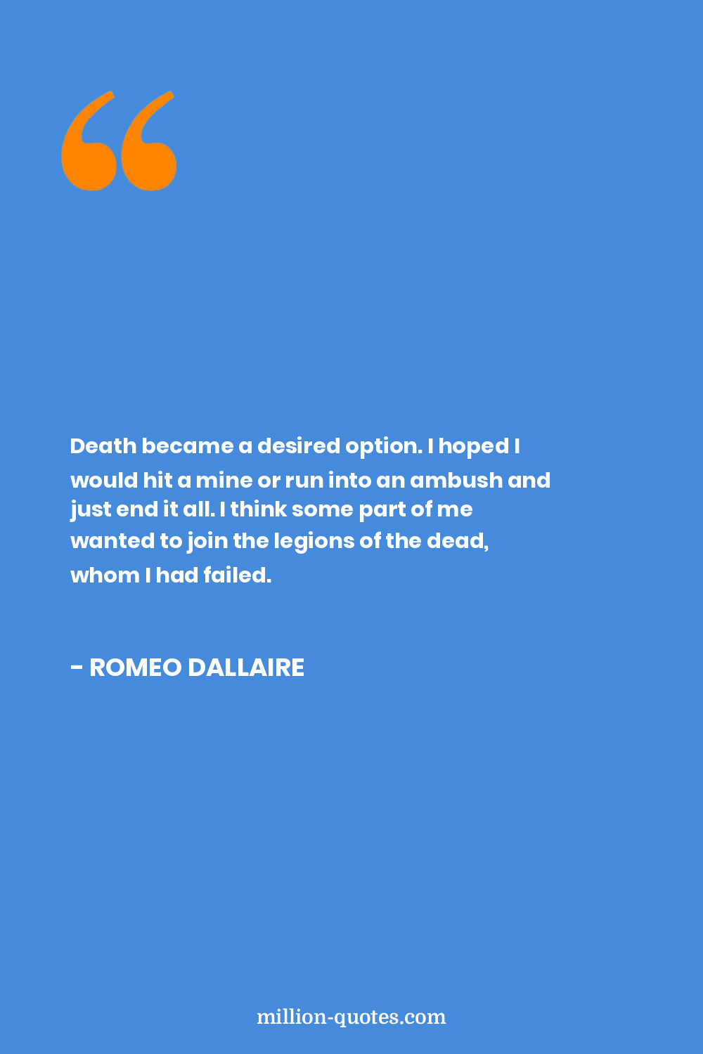 Death became a desired option. I hoped I would hit a mine or run into an ambush and just end it all. I think some part of me wanted to join the legions of the dead, whom I had failed.