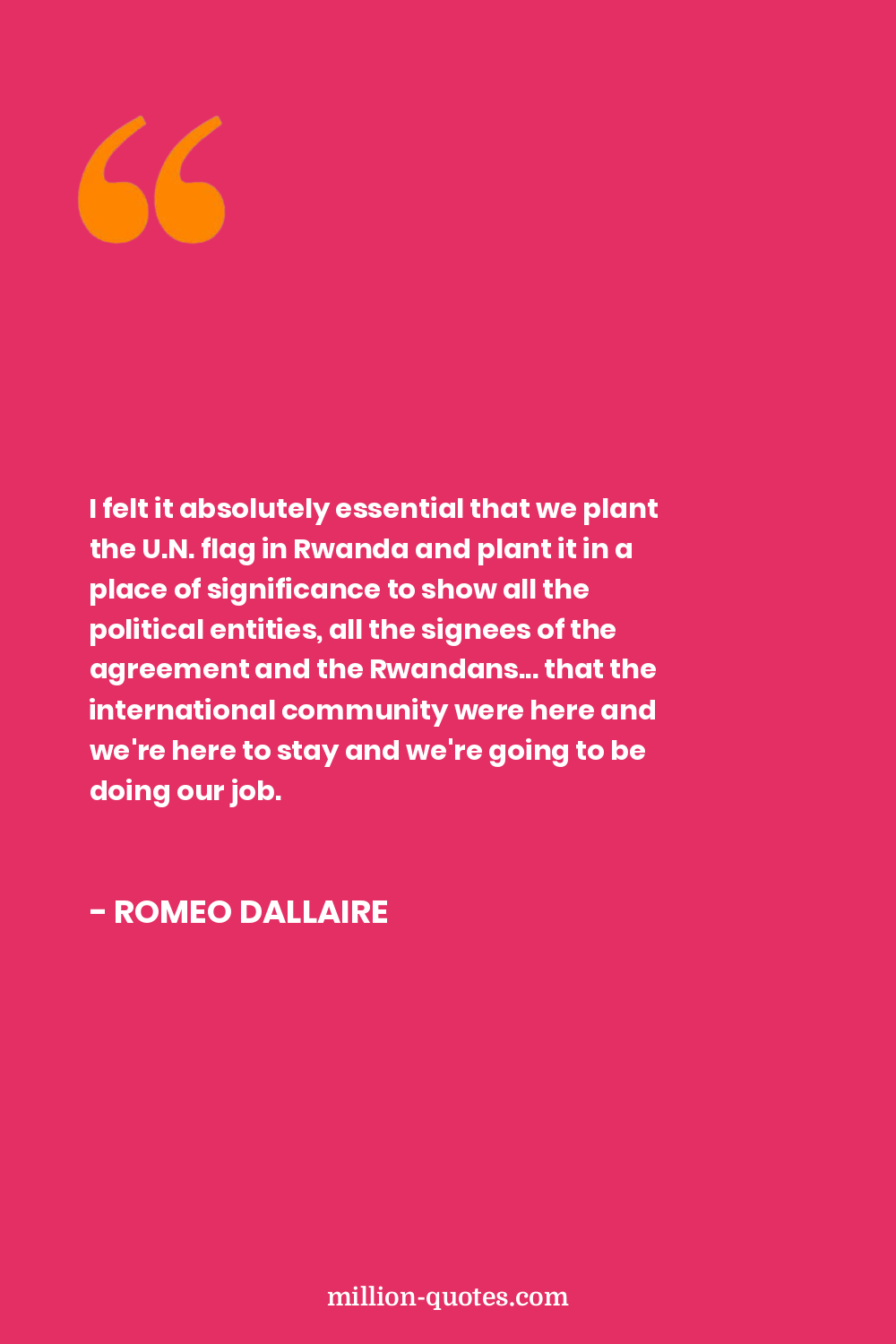 I felt it absolutely essential that we plant the U.N. flag in Rwanda and plant it in a place of significance to show all the political entities, all the signees of the agreement and the Rwandans... that the international community were here and we're here to stay and we're going to be doing our job.
