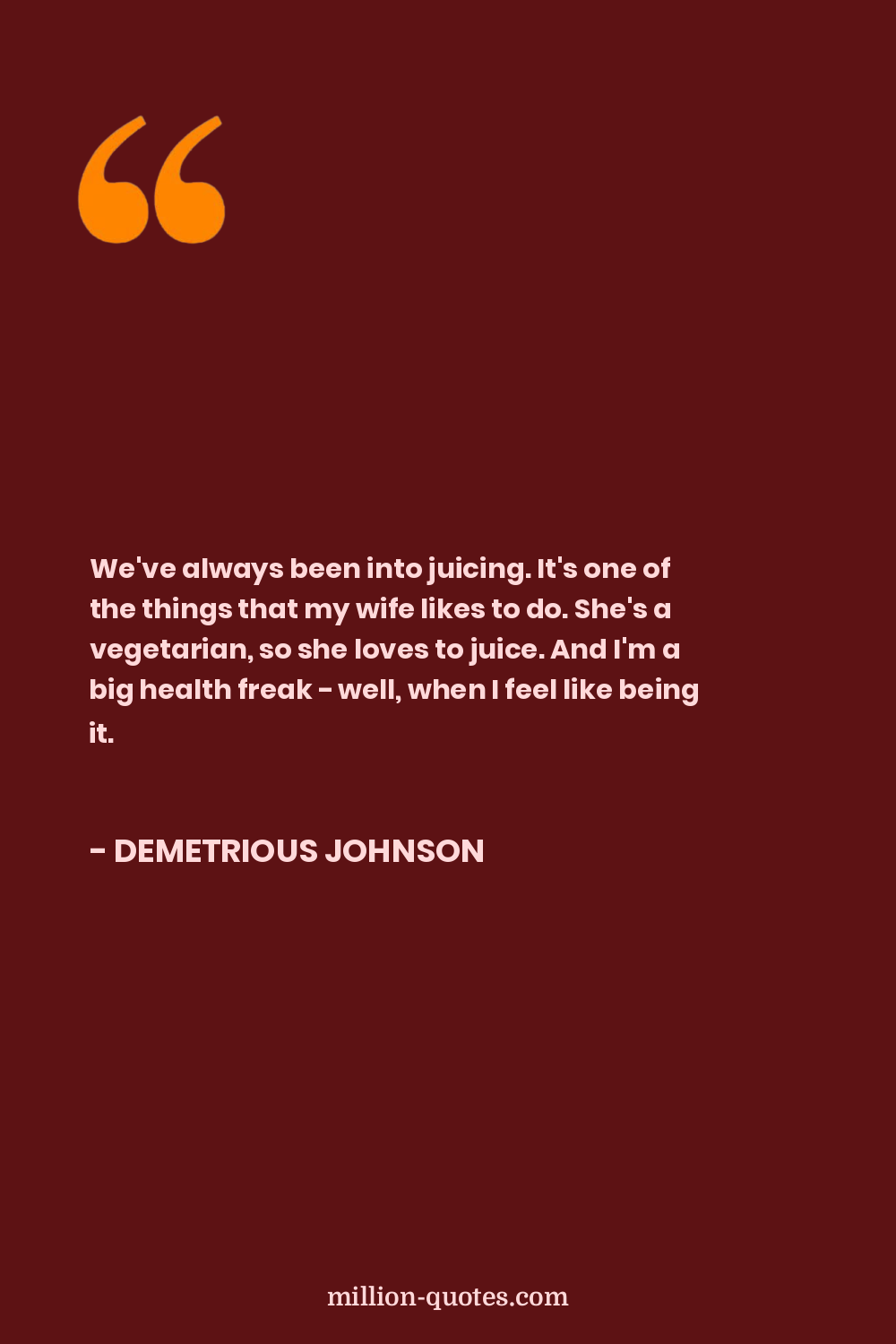 We've always been into juicing. It's one of the things that my wife likes to do. She's a vegetarian, so she loves to juice. And I'm a big health freak - well, when I feel like being it.