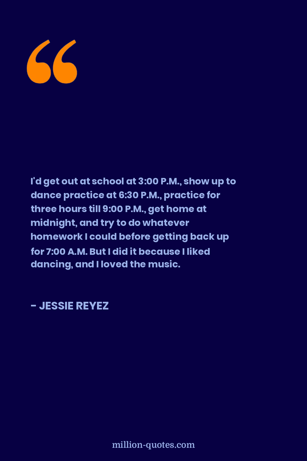 I'd get out at school at 3:00 P.M., show up to dance practice at 6:30 P.M., practice for three hours till 9:00 P.M., get home at midnight, and try to do whatever homework I could before getting back up for 7:00 A.M. But I did it because I liked dancing, and I loved the music.