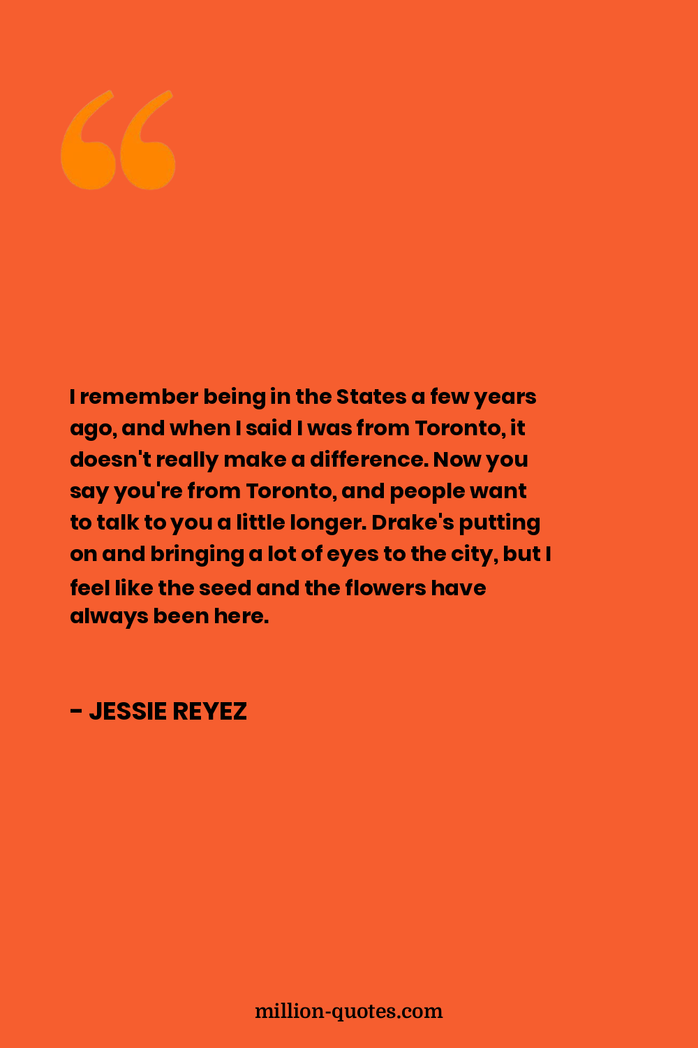 I remember being in the States a few years ago, and when I said I was from Toronto, it doesn't really make a difference. Now you say you're from Toronto, and people want to talk to you a little longer. Drake's putting on and bringing a lot of eyes to the city, but I feel like the seed and the flowers have always been here.